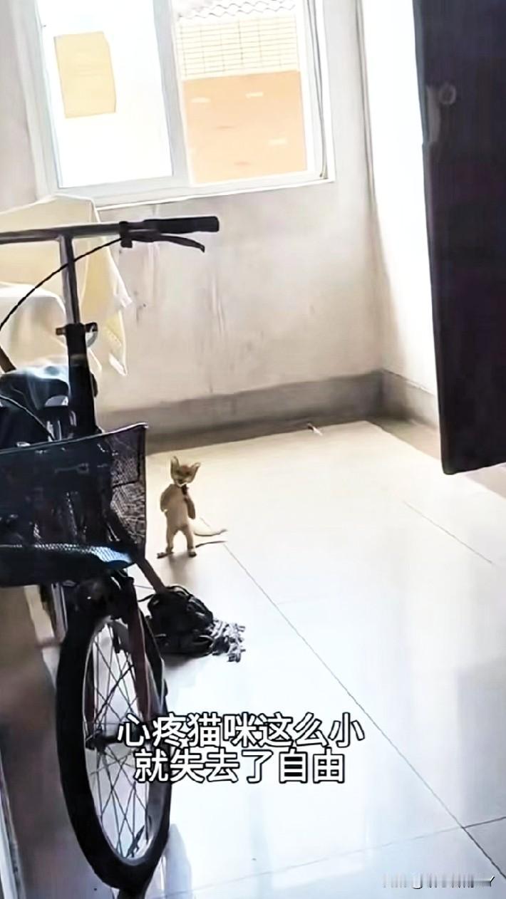 走廊杂物堆旁,一只五、六个月大的小奶猫太让人怜惜了!麻绳紧紧勒着它的脖子,拴在固定物体上。 它直立着身子,不断地扒拉、挣扎,却怎么也挣脱不开,只能无助的“喵、喵喵”直叫。 没有食物,也没有水,空荡荡的楼梯拐角,只有它孤零零的身影。它的眼神里满是“带我走”的哀求,让人看了揪心不已。 这小家伙本该自由自在的奔跑、撒娇,如今却被这样束缚着,失去自由。希望附近的人能够看到,帮它解开绳子。也期盼每个生命都能被温柔对待,别让弱小的它们独自承受这份痛苦的煎熬……