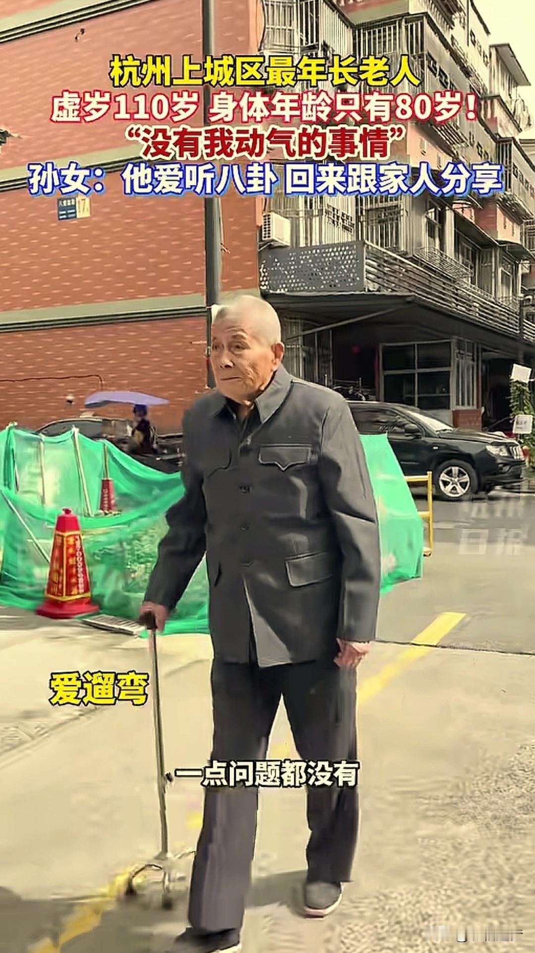浙江杭州,上城区出现一位最年长老人,年龄110岁,而身体看上去竟然只有80岁,老