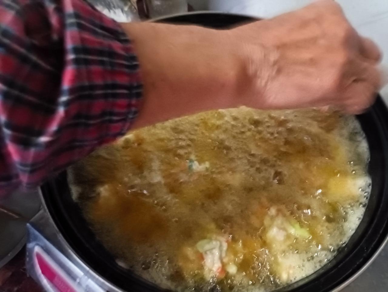 好吃的焦丸子! 今天上午下雨了,家里没啥事了,孩子想吃油榨的焦丸子了。 萝卜白菜花生米好面等,拌好料后,打开新买的大豆油,开始了。 滚滚油锅清香扑鼻,沸沸腾腾色香俱佳。吃在嘴里,又香又脆又酥,太美了。 普通人的生活,乐在其中。自己动手丰衣足食。 油榨的丸子,不仅仅是道美食,它还更是家庭的温馨和幸福,还是亲情的传递和孝道文化的传承。