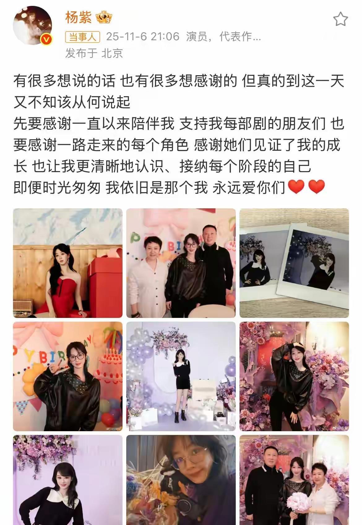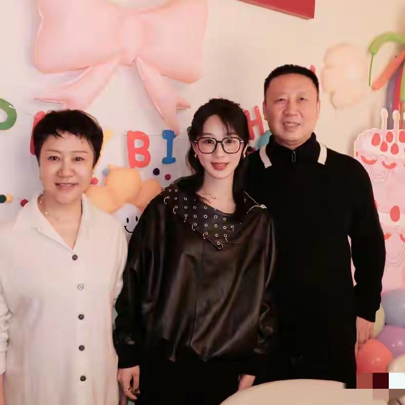 杨紫过生日, 最搞笑的是她爸爸, 一家人合照的时候, 腰背挺的那叫一个直, 真是