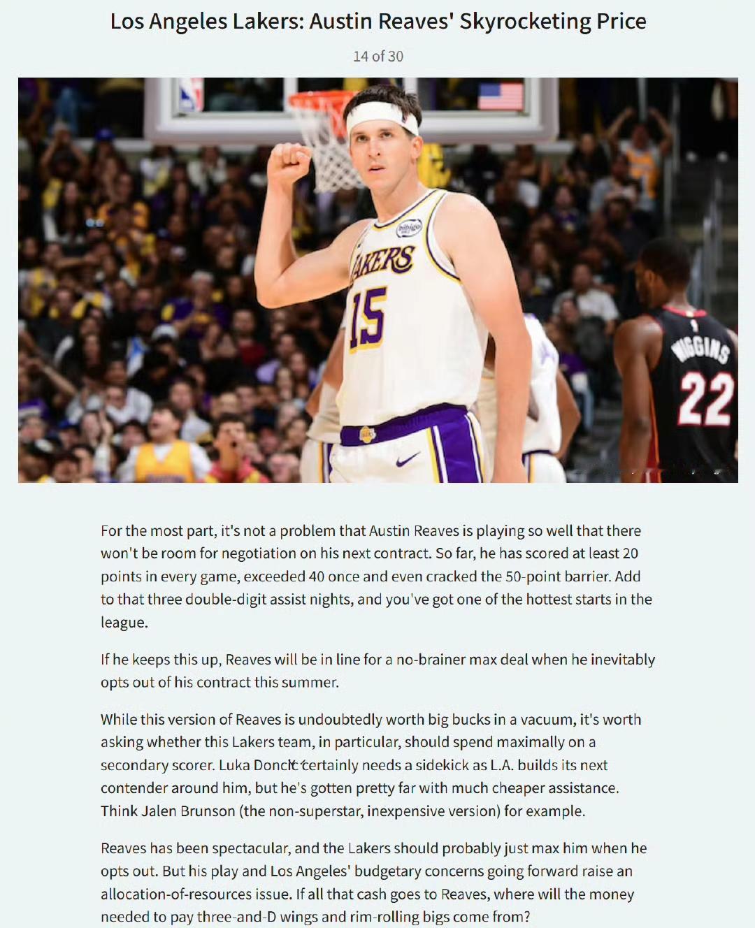 美媒说湖人现在最大问题,里夫斯身价飙升... 这还确实是大问题,因为湖人几乎在