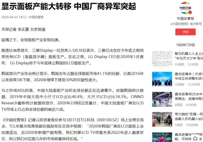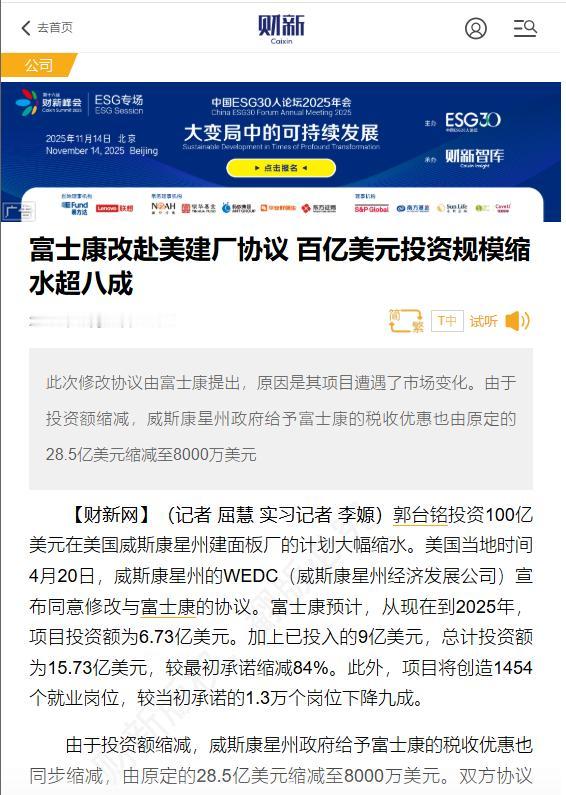 675亿化为乌有,郭台铭和富士康没想到国产崛起得竟然这么快。 2017年,郭台铭在白宫意气风发,宣布砸100亿美元(约675亿元人民币)在威斯康星州建10.5代面板厂,号称要带美国重返制造业巅峰。 那会儿他手里攥着威斯康星州政府给的40亿美元补贴大礼包,里面既有28.5亿的税收减免,还有7.64亿的基建拨款,连特朗普都把这个项目吹成“世界第八大奇迹”,没人怀疑这场豪赌能成。 郭台铭大概没算过,美国工人时薪高达37美元,这可是中国智能工厂机械臂运行成本的几十倍,更没料到80%的原材料得从墨西哥进口,光物流成本就把面板单价抬得没了竞争力。 可项目落地刚半年,就彻底露了怯。《华尔街日报》2018年底爆料,富士康在当地压根招不到足够的工程师,没办法只能想着从中国调人来救急。 当初承诺的1.3万个工作岗位,第一年实际到岗的才178人,第二年也只涨到582人,连协议要求的零头都没凑够,威斯康星州政府两次直接驳回了他们的补贴申请。 工厂规模也跟着一路缩水,从最先进的10.5代线降到8.5代线,再砍到6代线,最后干脆不提面板代次,转产起了低端产品。 到2021年,富士康不得不认怂,宣布投资额缩减84%,从100亿降到15.73亿,就业岗位也只剩1454个,原本吹下的“制造业巅峰”牛皮,彻底成了笑话。 就在富士康美国项目磕磕绊绊的时候,中国的面板产业却在背地里悄悄加速跑。2017年郭台铭在白宫高调官宣投资时,中国大陆已经首次成为全球高世代LCD产能最大的地区,大尺寸LCD面板的占比直接冲到了34.3%。 京东方和TCL华星光电那会儿已经从2015年的全球第四、第六,爬到了第二和第五的位置,而且还在一个劲扩产。 韩国显示产业协会的数据清清楚楚地显示,韩国面板的全球份额从2016年的41.1%一路下滑,2020年直接跌到30%以下,三星和LG Display只能接连关闭本土的LCD生产线,LG甚至直白地说“中国企业一个劲增产,把市场行情搞坏了,根本没法盈利”。 中国厂商的崛起可不光是靠堆产能,更靠的是完整的产业链撑着。面板生产需要的玻璃基板、液晶材料这些关键部件,国内早就形成了完整的配套产业集群。 东旭光电2017年底就有了四大生产基地,稳稳坐着国内第一、全球第四的玻璃基板供应商宝座,直接给京东方、华星光电供货,省掉了跨国采购的麻烦和额外花费。 这种产业链带来的成本控制能力,让韩企根本扛不住,连新韩证券的分析师都坦言,三星退出LCD市场,就是在和中国企业的竞争中彻底输了。 2020年成了真正的转折点,三星直接宣布年底关停所有LCD产能,LG也停掉了韩国本土的电视面板生产。 中国厂商立马趁机接棒,2020年2月,中国大陆面板厂商在LCDTV市场的份额已经逼近六成,华星光电单月出货面积居然超过了京东方,直接登顶全球第一。 到2025年,国内厂商在全球LCD面板供应的份额预计能达到72.7%,大尺寸液晶显屏更是拿下90%以上的市场,京东方和TCL华星光电稳稳霸占着全球前两名的位置。 更讽刺的是,当富士康美国工厂还在为招工和物流的事儿愁眉苦脸时,中国企业已经开始捡漏韩企留下的技术遗产。 2023年三星把数千项LCD专利转让给了华星光电,2025年TCL科技完成了对LGD广州8.5代线的收购,这些操作让国内面板技术再上一个台阶。 威斯康星州那3000英亩的土地,现在只剩齐腰深的野草,还有几栋孤零零杵在那儿的厂房,政府砸进去的3亿基建款,只换来了一条通向荒地的柏油路,还有给寥寥几台机器供电的高压电线。 郭台铭当初大概觉得,靠着美国的补贴和自己的制造经验,就能轻松抢占高端市场,却没看清中国制造业早就不是单纯堆产能那么简单。 从京东方连续多年亏损后终于实现盈利,到华星光电撑起TCL集团一半的净利润,国内企业用了十几年时间,硬生生熬出了技术和成本优势,还熬出了完整的产业链生态。 当威斯康星的厂房里野草长到齐腰深,郭台铭大概才真正明白,他赌输的不只是美国市场,更是低估了中国制造业崛起的速度。675亿打了水漂,最后成了国产崛起最真实、最鲜活的注脚。