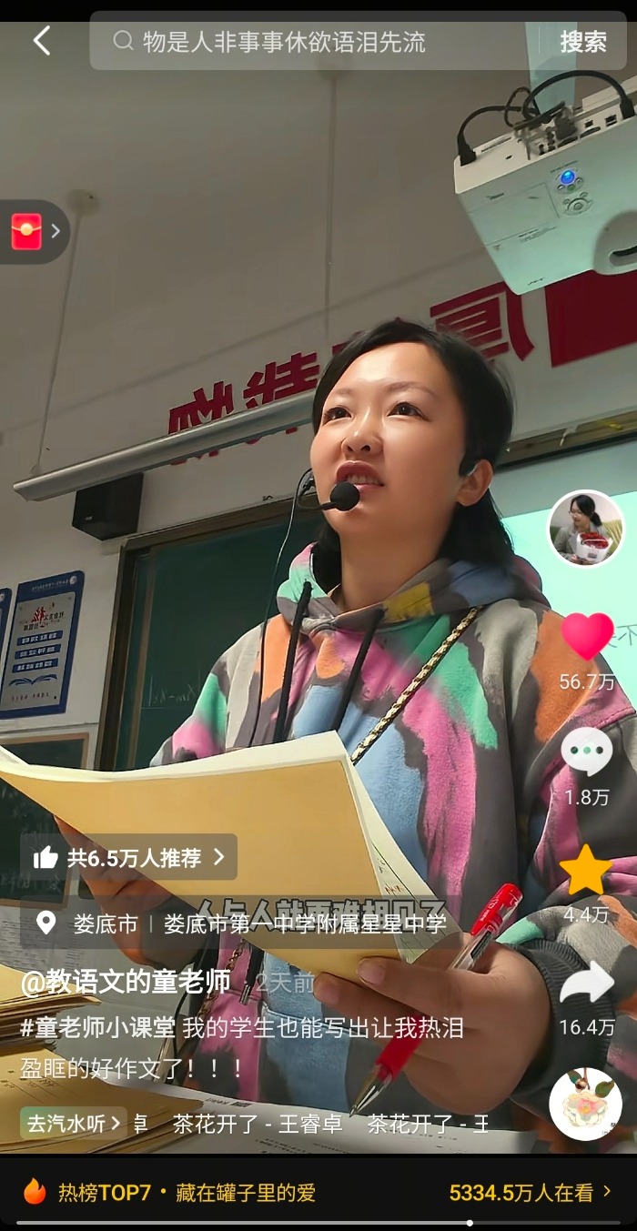 大皖新闻讯学生在作文中回忆与奶奶之间的事,奶奶从罐子里舀白糖给他吃的小小回忆,生动表达了祖孙之间真挚深沉的情感。老师被这篇作文感动,将在课堂上分享这篇作文金句的视频发在网上,获得超5000万人观看。11月7日,发布视频的童丽芳老师告诉大皖新闻记者,作文作者是湖南娄底市第一中学附属星星中学初三年级的学生,是她的学生,作文火了之后,孩子还曾主动要求看不好的评论,认为会对自己有帮助。