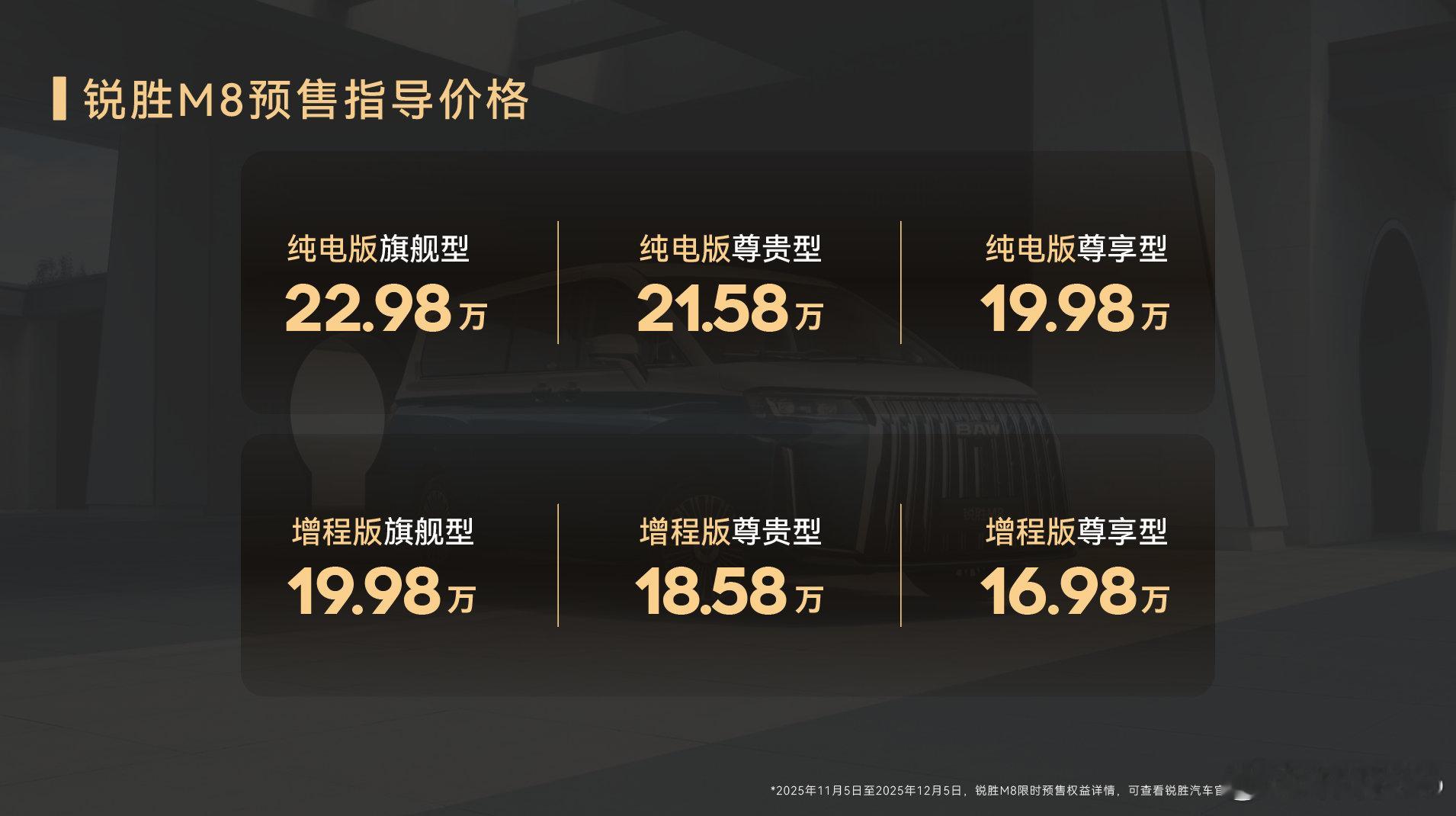 锐胜 M8 大型 MPV 正式预售 16.98 万起,三排都是商务舱。