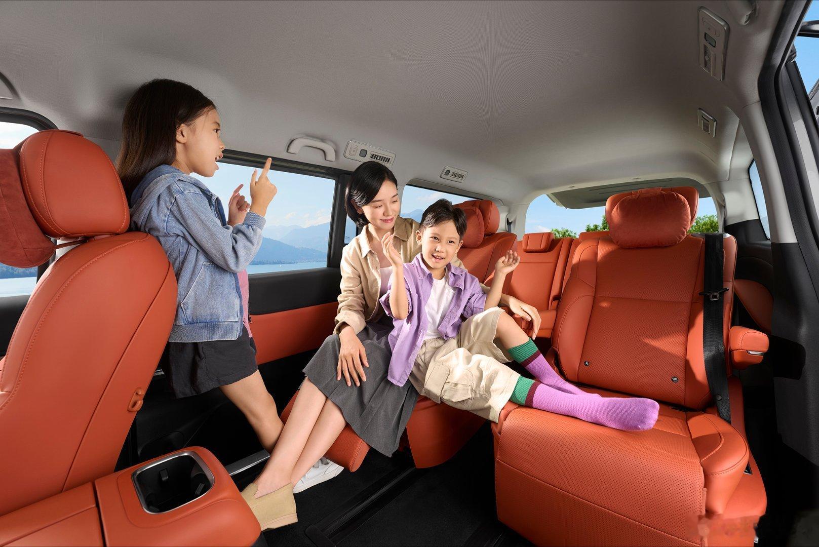 三排腿部空间与,1270mm 行李舱空间,配合 6180L 车内总容积,座椅支持 7 种空间组合