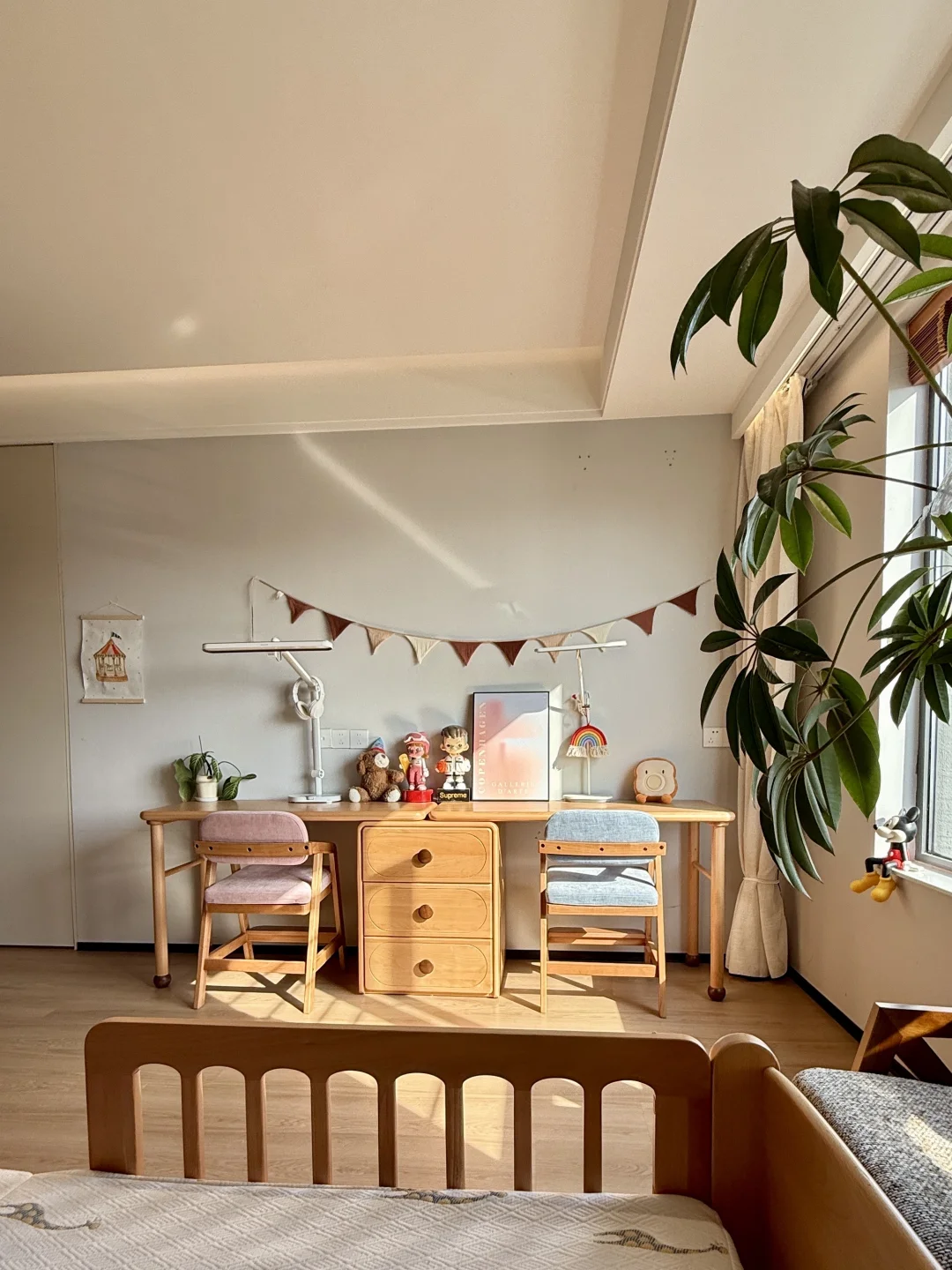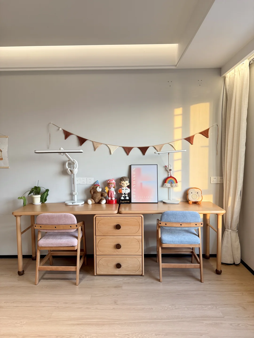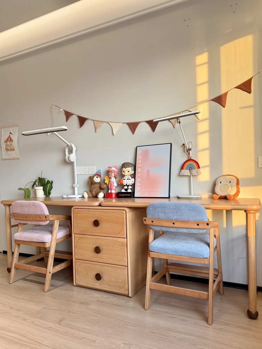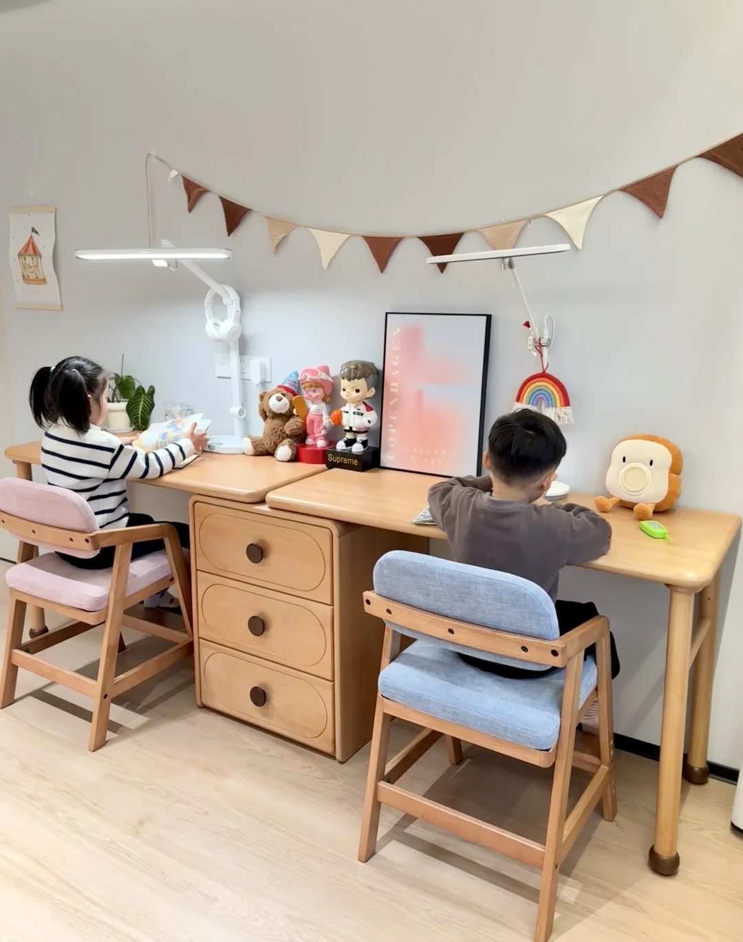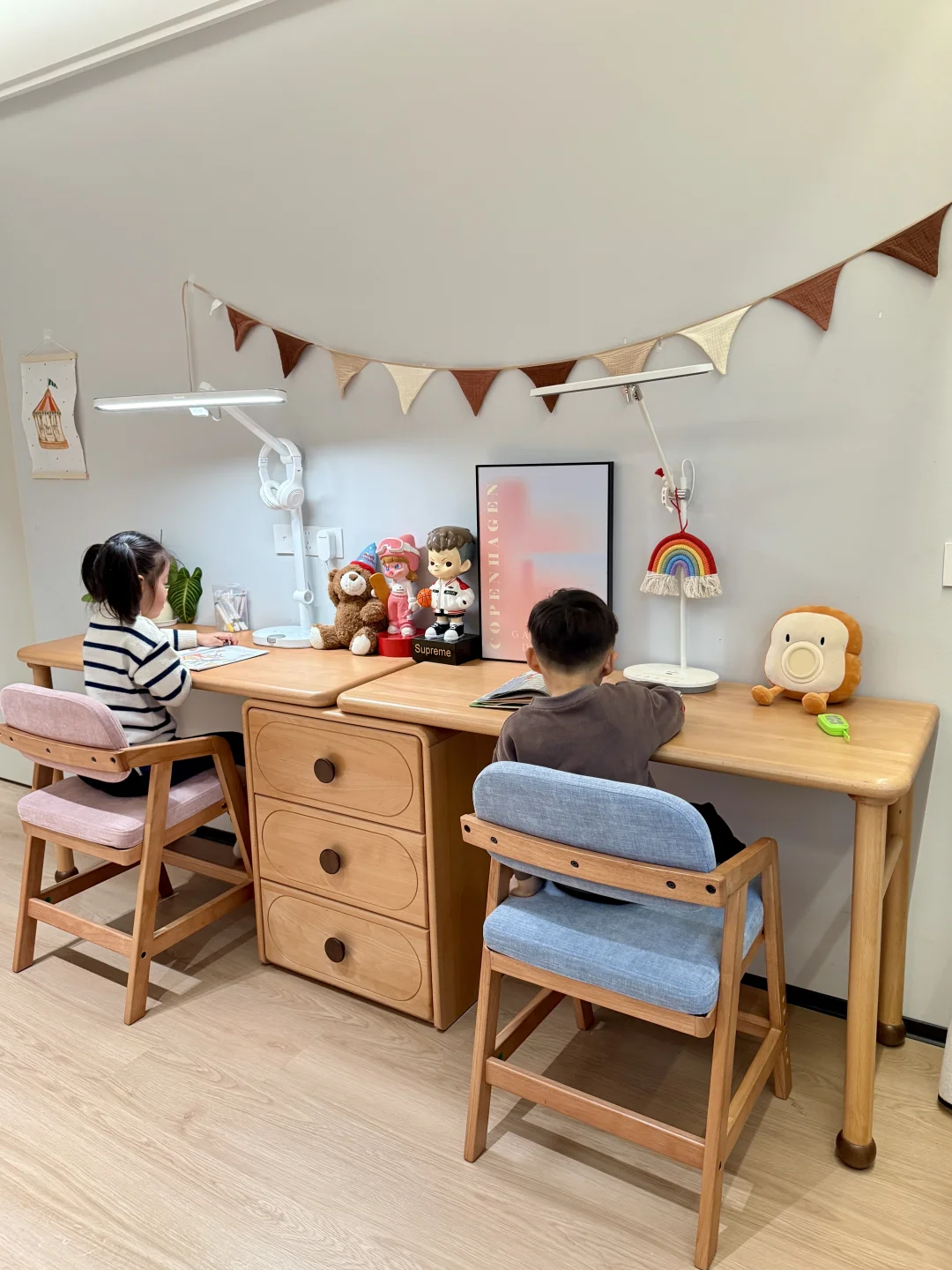 大家都说;二胎家庭的生活不是每天岁月静好,母慈子孝,而是鸡飞狗跳的战场!但28岁的我勇闯“三年抱两”的局,身为二胎妈妈,我太懂两个孩子一起学习的痛了!也深知选对书桌能省一半心❤️ ✅所以做了很多功课,选择了源氏木语伙伴.儿童伸缩学习桌!放在床尾空间,能轻松布置适合两个孩子的学习区。一起学习也能互不打扰🎀 ✅简约的造型颜值很高,放在家里也很百搭,纯实木的材质,没异味,给宝宝用起来也更放心。整体边角做了弧形处理,俩娃打闹也不担心磕碰🧸 ✅最戳我的是它的成长型设计!书桌的长度可以根据需求自由调节,5cm的加粗桌腿,书桌很稳固。50cm的深度,不管是写字,画画,还是看绘本,都完全够用🌸 ✅搭配它家的扶手椅,高度可以根据身高自由调节,坐包靠包里都是高密度海绵,软弹有支撑,孩子久坐也不累,也不弯腰驼背学习了,从幼儿园用到高中都没问题👧 二胎家庭布置学习区,真的不用买一堆,一张成长型的双人书桌配上一对可调节扶手椅,简直就是为二胎家庭量身定做!
