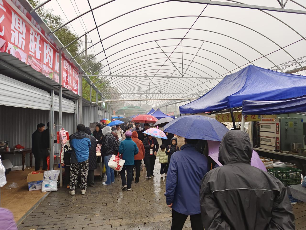 锦屏社区附近的大集,不知碍了谁的眼,扫了谁的面子,不知被什么人取缔好几年了。 附近数万常住居民盼星星盼月亮,龙鼎市集今天第一个大集开市,尽管蒙蒙细雨天气,但四里八乡的居民蜂涌而至,入口处赶集的人们排着长长的队,盛况盛景。 这样聚人心,合人意的好事善事要多做多干,里子比面子重要,肚皮不存,脸皮安附,热热闹闹赶大集,欢欢喜喜花钱赚钱是不是精神文明?