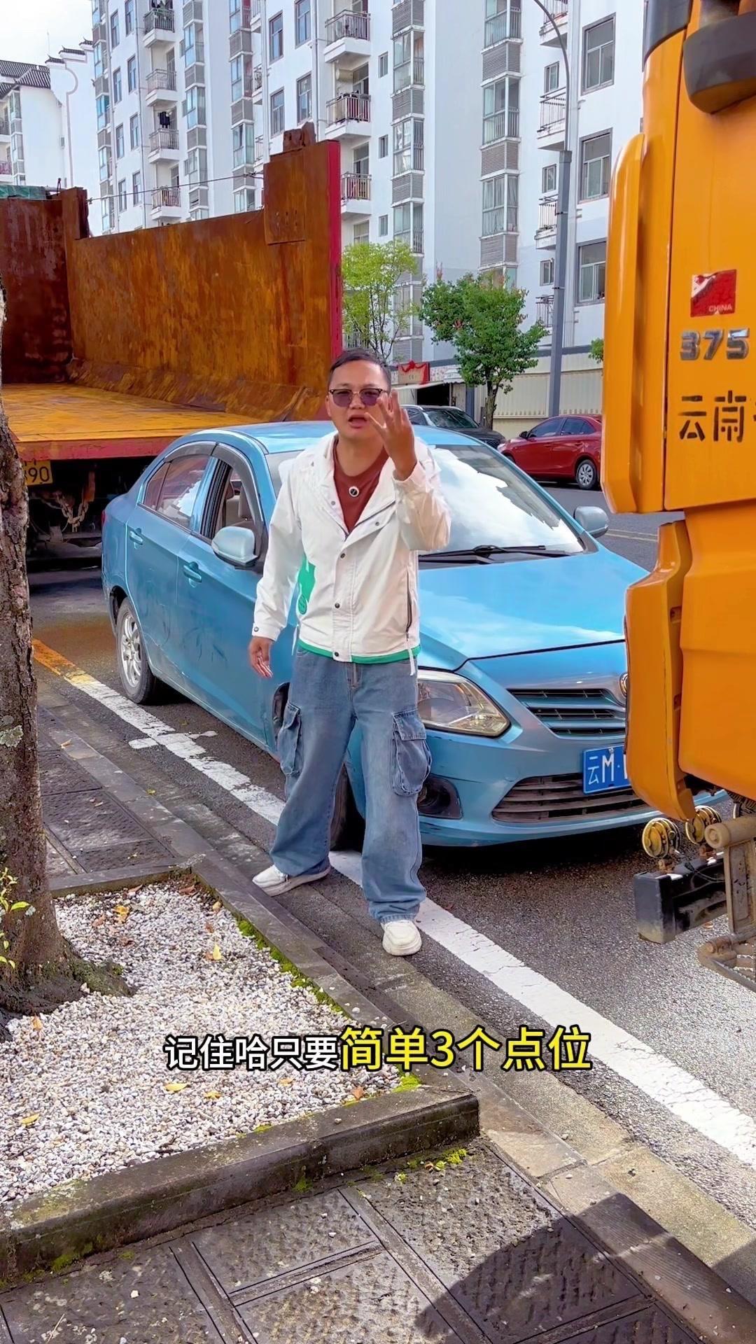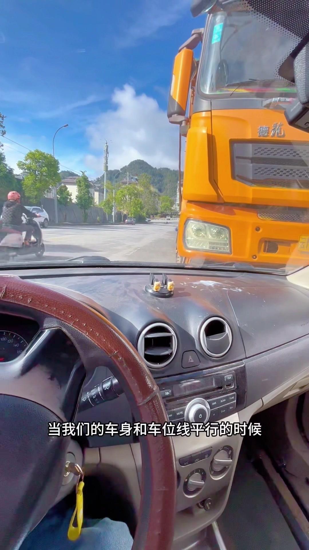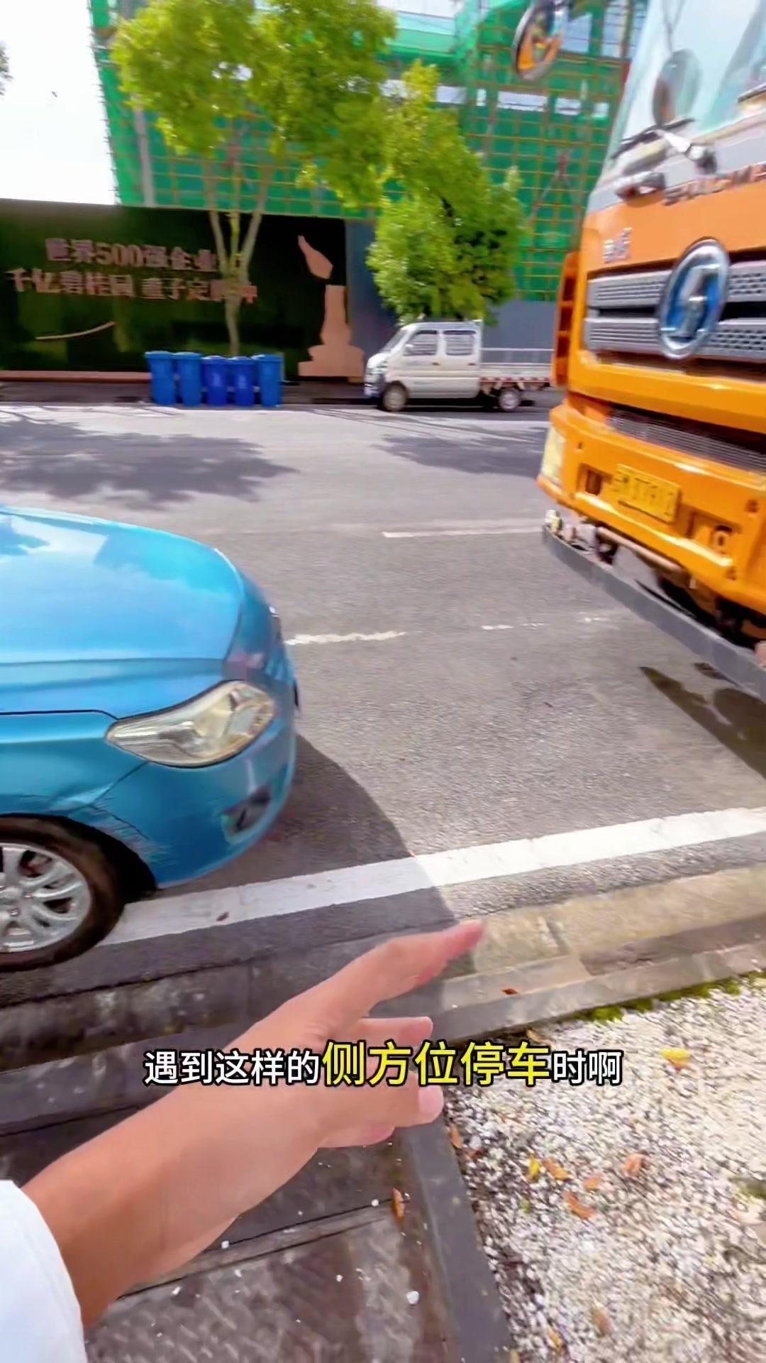 前后都是大货车也不怕! 其实侧方位停车掌握好点位就很简单,今天教大家3个实用技巧,新手也能快速上手~ 1️⃣往前开时,先让车身和旁边占位距离大于50厘米。因为后视镜和B柱都看不到,所以看着后视镜,当后视镜和车对齐后,往左打满方向盘前进。 2️⃣盯着左侧后视镜,看到后方车辆两灯或完整车位时停车,这时回正方向盘直接往后退。退的时候可以看A柱夹角和车门把手,A柱夹角与车对齐,前门把手和马路牙子对齐,然后打满方向盘。 3️⃣等车身和车位线平行时停车,往前挪一点就停好了,车尾车距很合适。