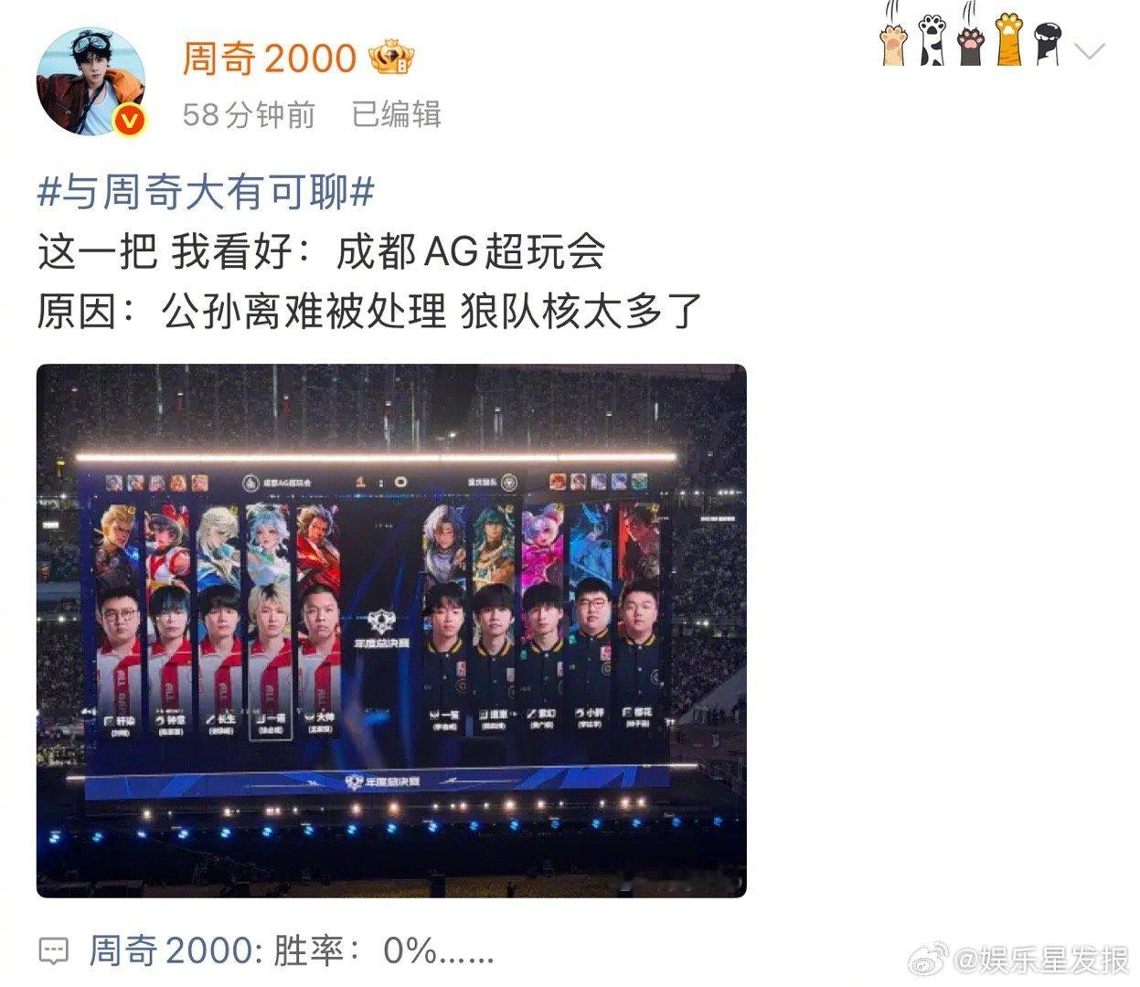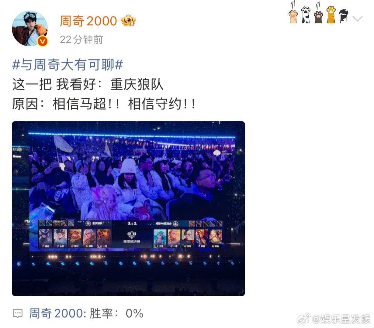 周奇超话实时观赛KPL总决赛 果然,我就知道一定在现场,又开始了超话实时观赛预测,不过你怎么也开始毒奶了!