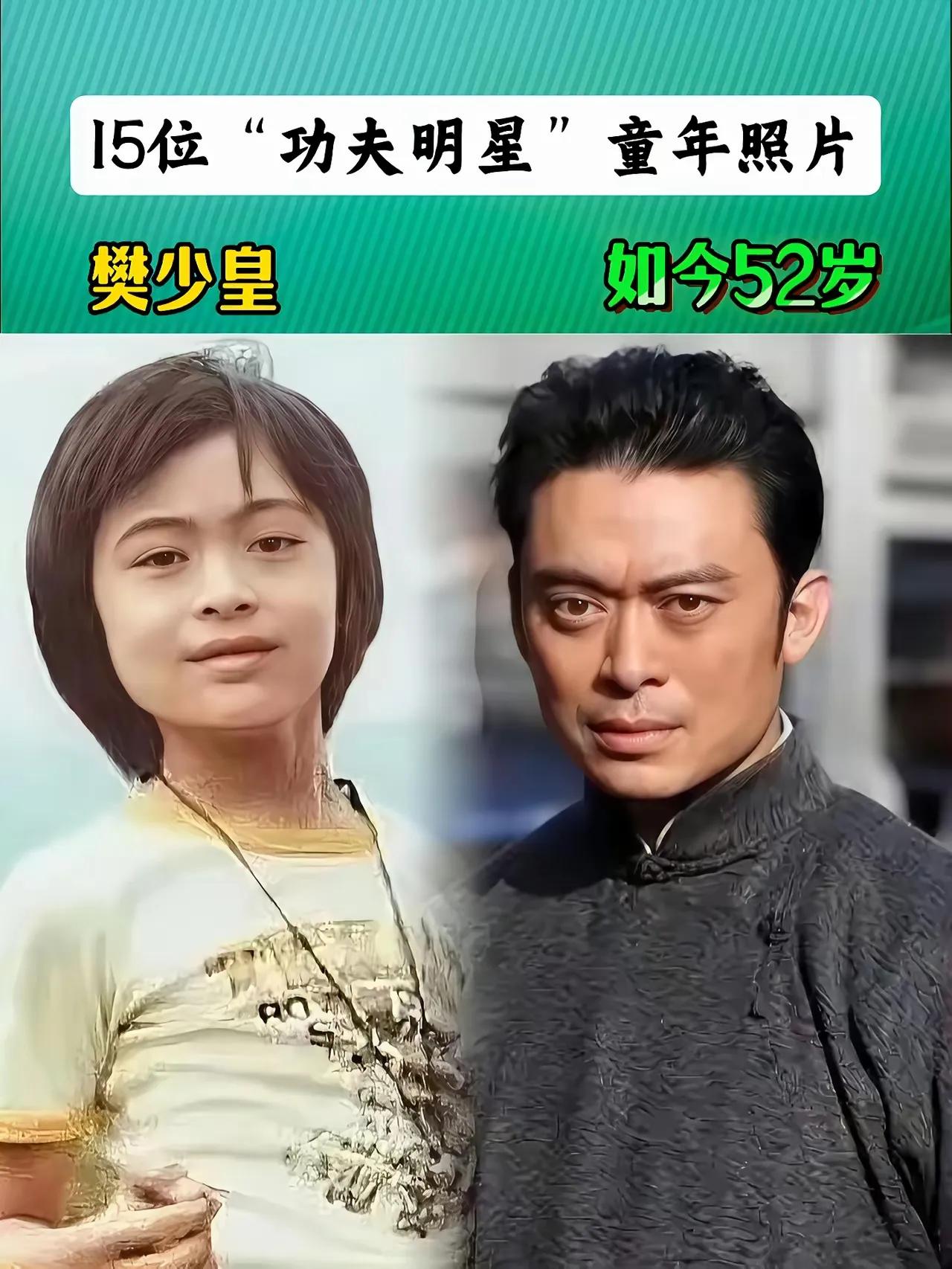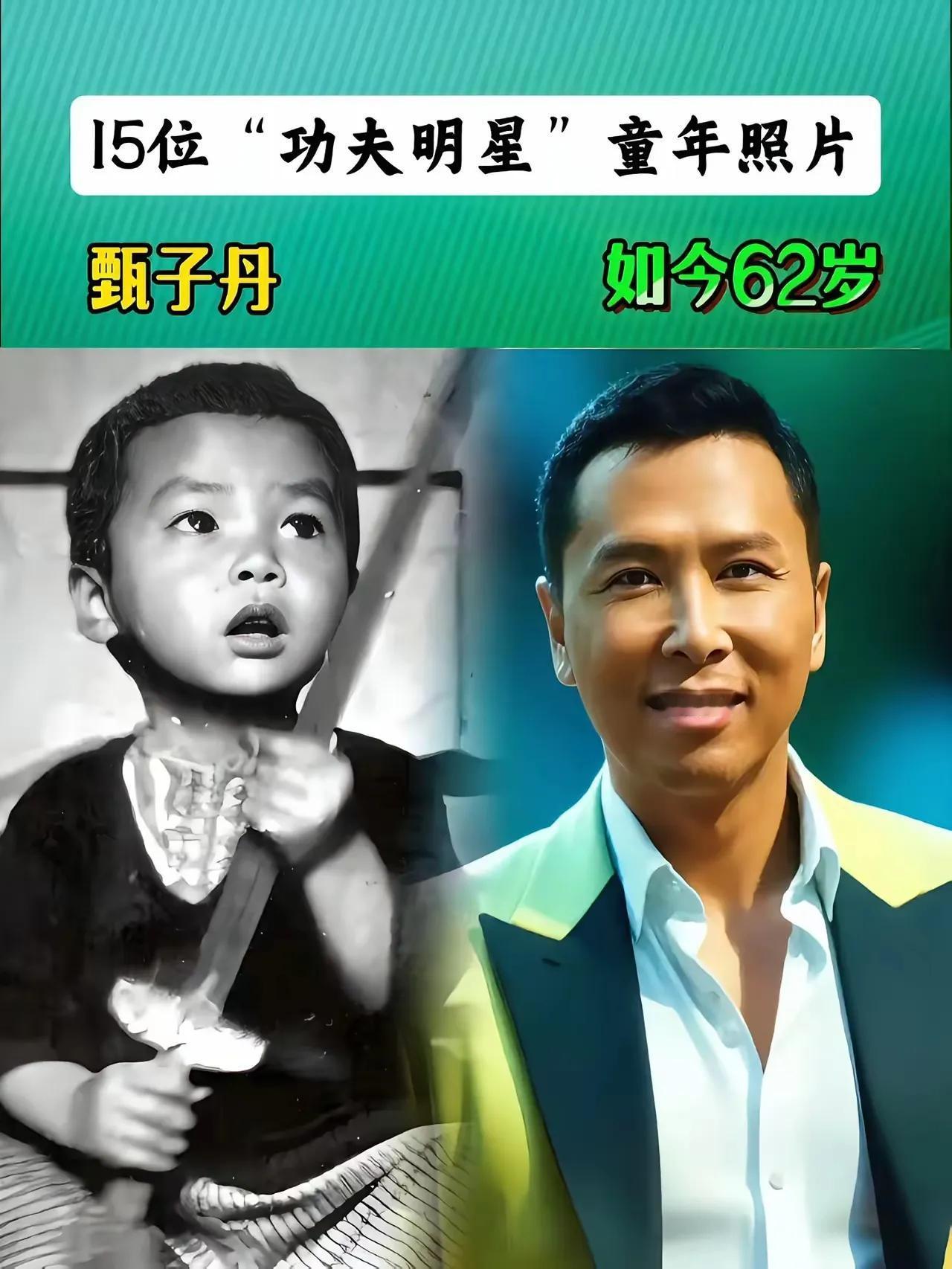 小时候的成龙。 小时候的洪金宝。 小时候的向佐。 小时候的樊少皇。 小时候的甄子丹。 小时候的谢苗。 小时候的吴京。 小时候的释小龙。 小时候的李连杰。 这些都是娱乐圈中非常有名的武打明星,他们演的功夫片都是非常的出彩,他们的功夫都非常的了得,就比如说成龙,他是家喻户晓的演员,年轻时候的成龙拍了很多精彩的功夫电影,在电影中他的打戏行云流水,非常的流畅,在海内外有着颇高的知名度,如今随着年龄的增长,已经七十多岁的成龙已经白发苍苍。