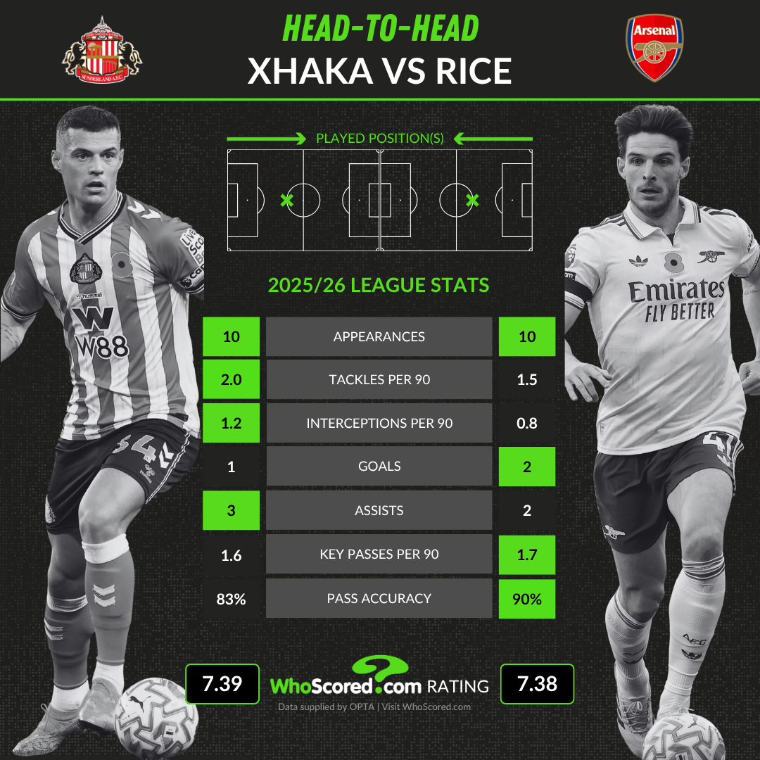 虎扑11月08日讯英超第11轮,桑德兰对阵阿森纳,赛前whoscored盘点扎卡与赖斯本赛季英超数据(扎卡在前):