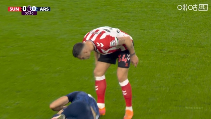 第34分钟,阿森纳后场反击,梅里诺回做,被扎卡放倒!随后前阿森纳队长扎卡对仍倒在地上的梅里诺贴脸怒喷!