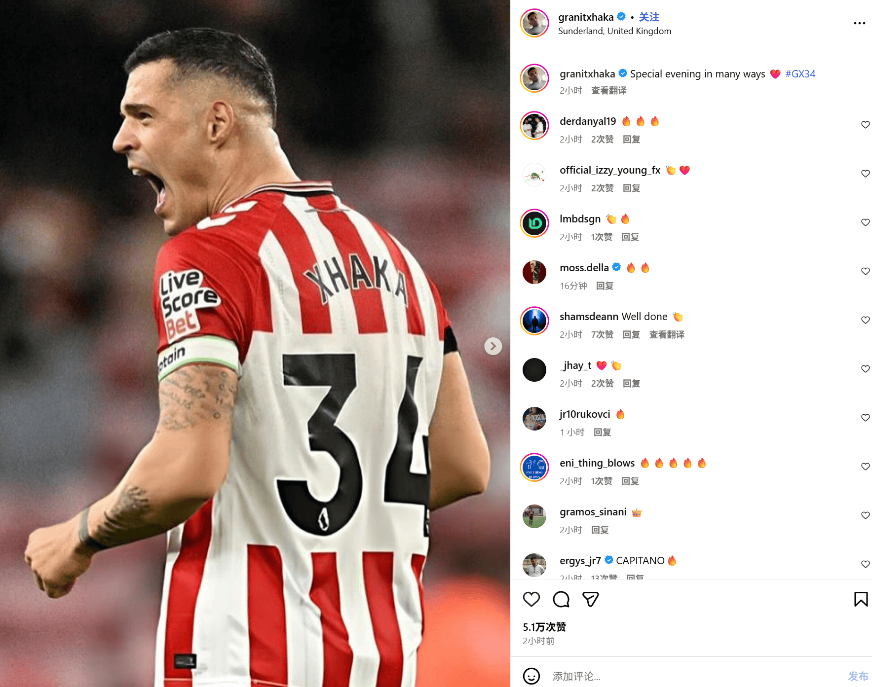扎卡晒出了比赛的赛场照,并配文写道:“从各方面来看,这都是意义非凡的夜晚。”