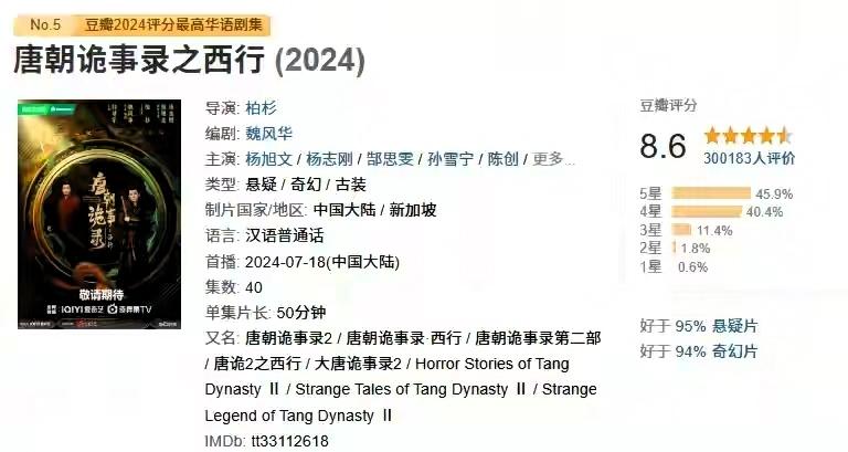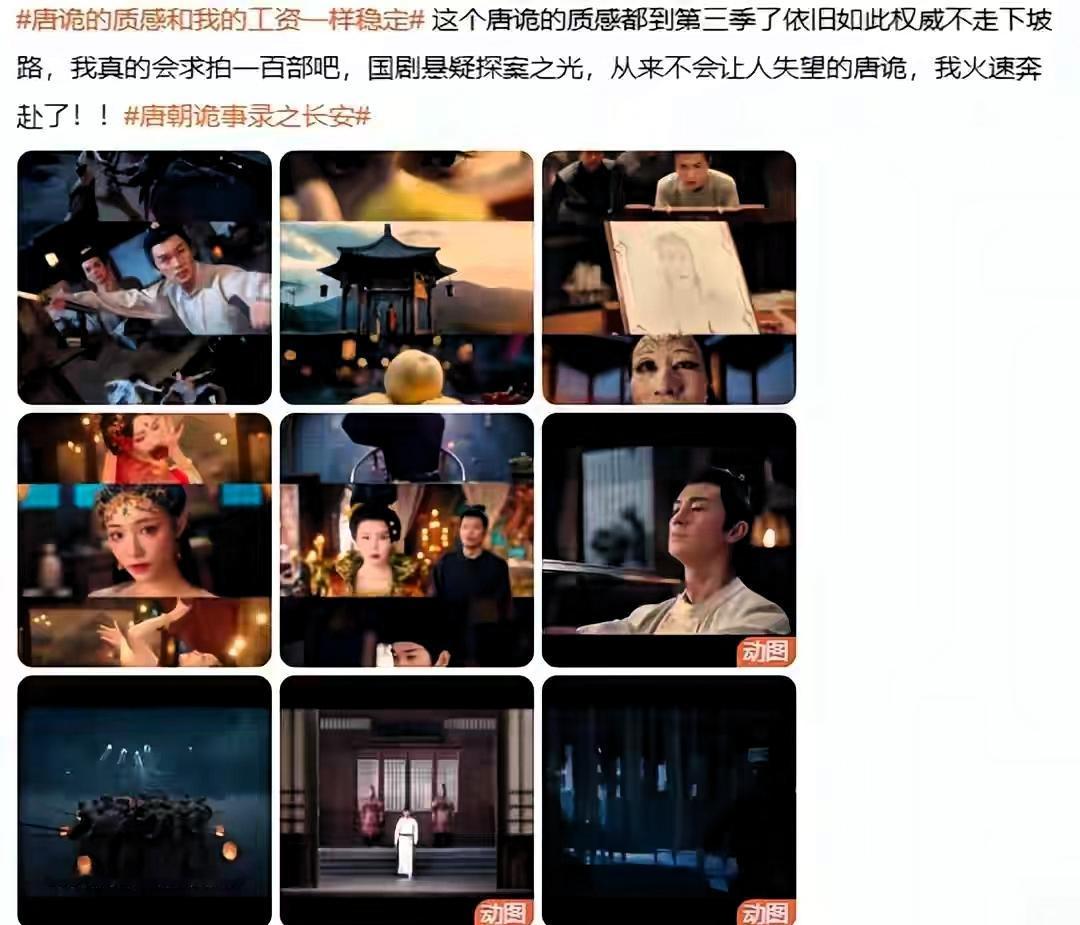 《唐朝诡事录3》第一波真实口碑出炉!观众的评价一针见血 没有流量明星撑场面,没有工业糖精瞎注水,更没有逻辑不通的降智剧情,《唐诡3》全靠实打实的诚意征服观众。原班人马一个没换真的太香了!杨旭文的卢凌风依旧帅炸,硬核打戏拳拳到肉,动作干净利落看得人热血沸腾; 杨志刚的苏无名还是那股子狡黠劲儿,嘴炮破案自带笑点,和卢凌风的搭档默契度直接拉满。还有陈创的费鸡师,接地气的模样满是烟火气,裴喜君、褚樱桃的女性角色鲜活不工具,就连配角大长公主、新帝都气场在线,群像戏简直绝了。 剧情更是高能到停不下来,八大诡案开局就放大招,“康国金桃案”里的巨鸟突袭、皇宫刺杀,短短一集就把悬念拉满,后续还联动了前作“甘棠驿”的刘十七,伏笔埋得又深又妙,唐诡宇宙的氛围感直接拉满。更让人惊喜的是剧组的用心,斥资3000万实景复原长安108坊,服化道精致到能看清衣料纹路和配饰细节,每一帧都透着大唐美学,质感绝了。 它用实力证明,国产剧不用靠炒作、不用堆流量,只要用心打磨剧情、雕琢细节,观众就愿意买账、愿意主动安利。现在打开弹幕,全是“年度最佳古装剧”“求赶紧加更”的呼声,比起那些粗制滥造的续作,《唐诡3》简直是行业清流。