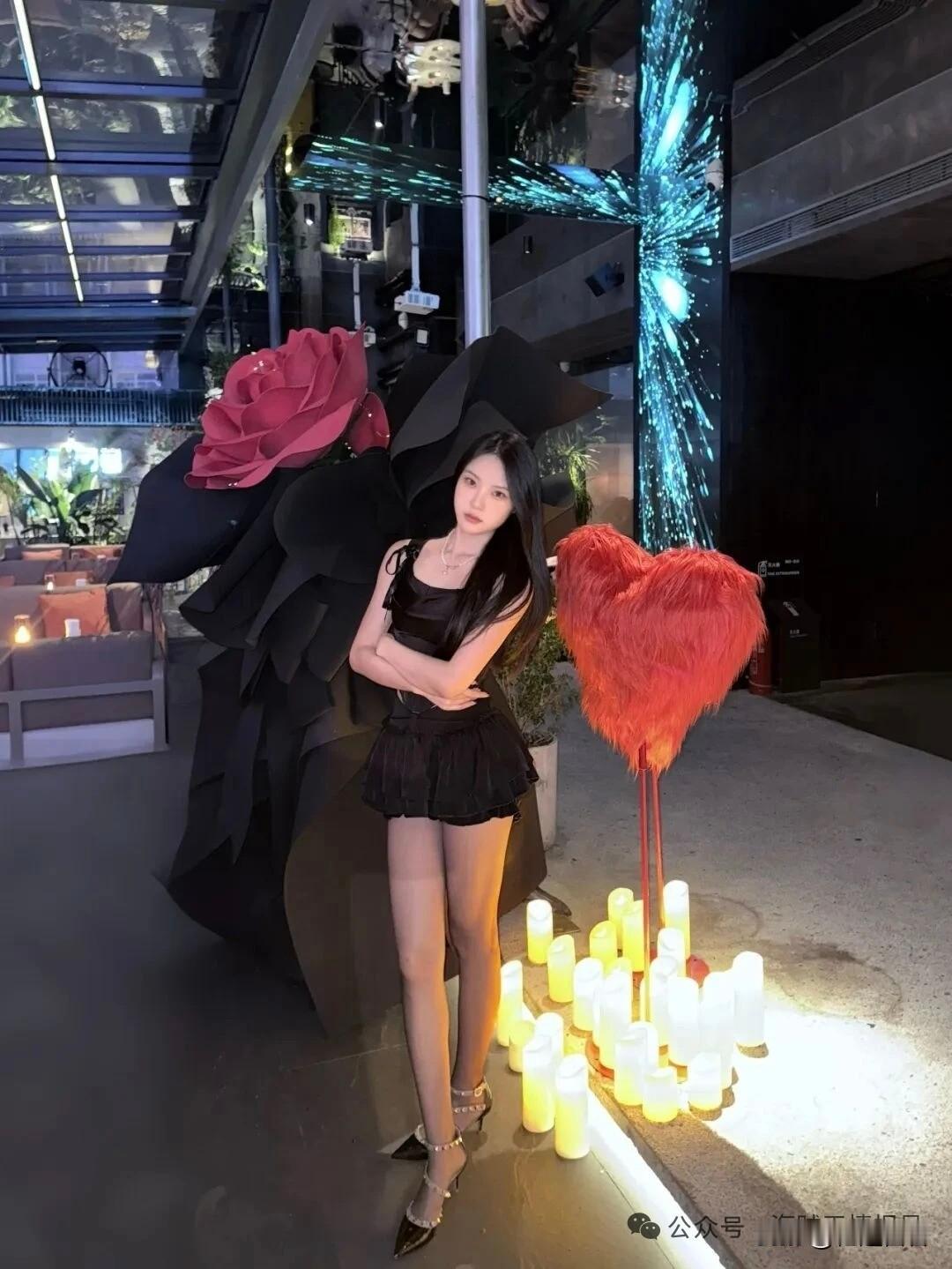 夜晚的都市浪漫,黑裙女孩的优雅姿态