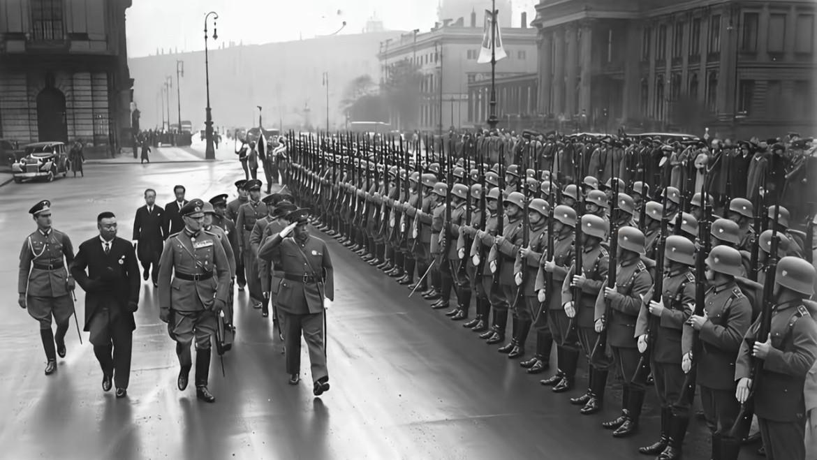 1934年10月,中国军事考察团在德国访问期间,团长徐庭瑶中将和交通部次长俞飞鹏在德国国防部长兼武装部队总司令维尔纳·冯·勃洛姆堡陆军上将的陪同下,检阅德国国防军仪仗队的隆重场面。此次访问进一步促进了中德军事合作,更多德国顾问和装备陆续来华,对抗战前中国的国防建设起到了积极作用。尽管合作卓有成效,但随着1937年抗战全面爆发,特别是1938年德国为联日而召回顾问,中德军事蜜月期宣告结束。#历史#