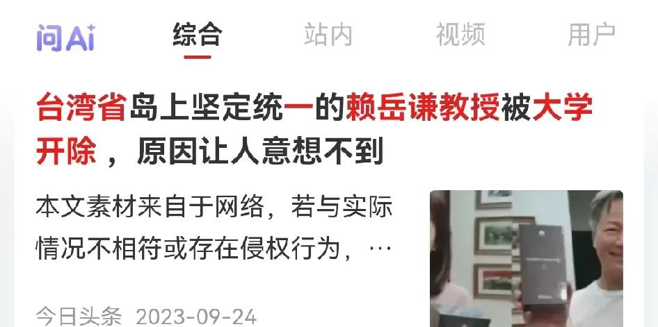 赖岳谦教授因在公开场合直言“台湾是中国一省”,遭政治大学开除教职,随即陷入绿营网军围攻,上万条恶意留言污蔑他“收大陆钱”。 这无疑是民进党一手导演的“绿色恐怖”。洪秀柱痛斥:他们满嘴“民主自由”,干的却是打压异己的勾当。从李东宪挥舞五星红旗遭网暴,到陆生周泓旭被诬为“共谍”,种种行径早已屡见不鲜。 赖教授选择回到福建上杭祭祖寻根,族谱清晰记录着血脉相连的根源。他一句“台湾人就是中国人”,掷地有声,不仅道出历史真相,更戳穿了“台独”势力数典忘祖的谎言。民进党惧怕的,从来都是这份无法割断的认同与真相! 对此你怎么看?