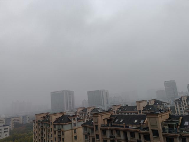 9日早晨,合肥天空雨雾蒙蒙,能见度较低。