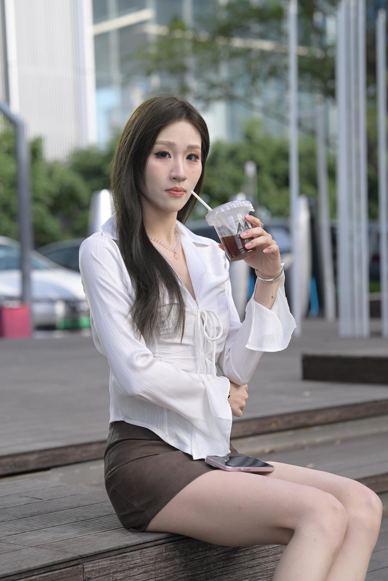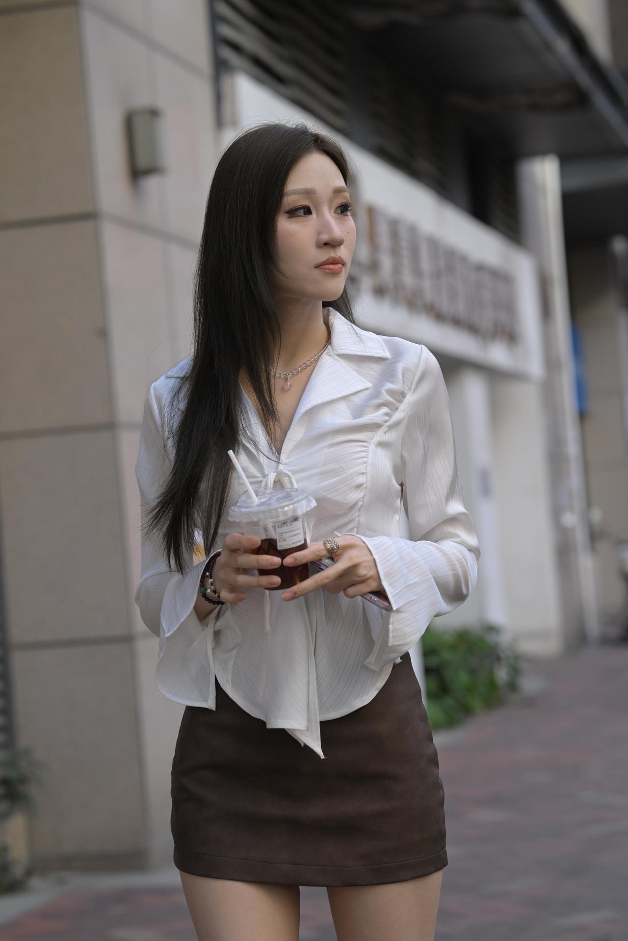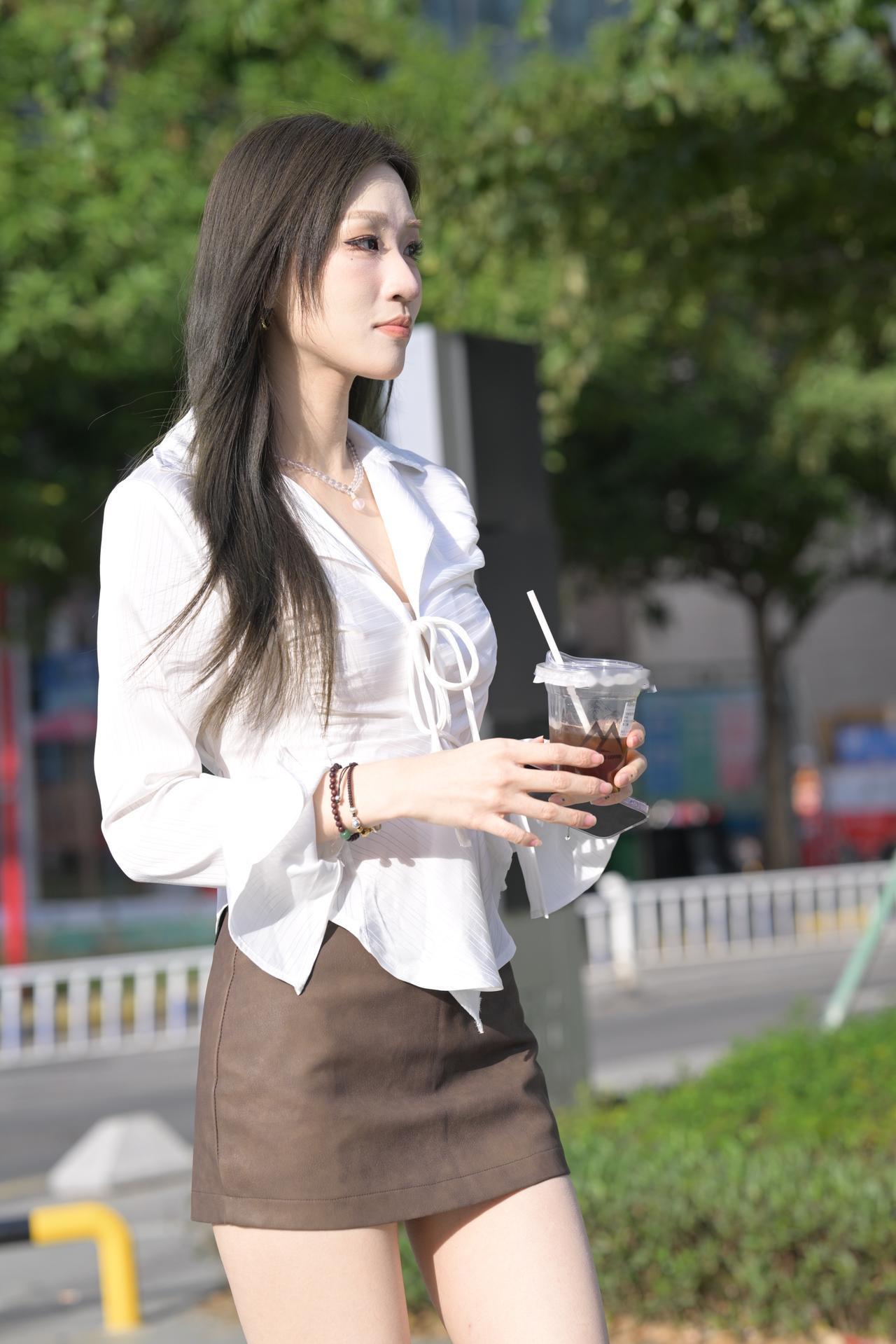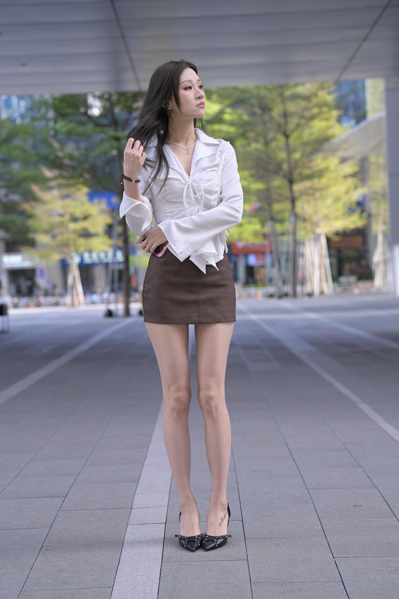月亮与六便士 白色衬衫棕色包臀裙美腿高跟小姐姐,是不是有点太瘦呀-9500 无水印原图分享,素材来自网络