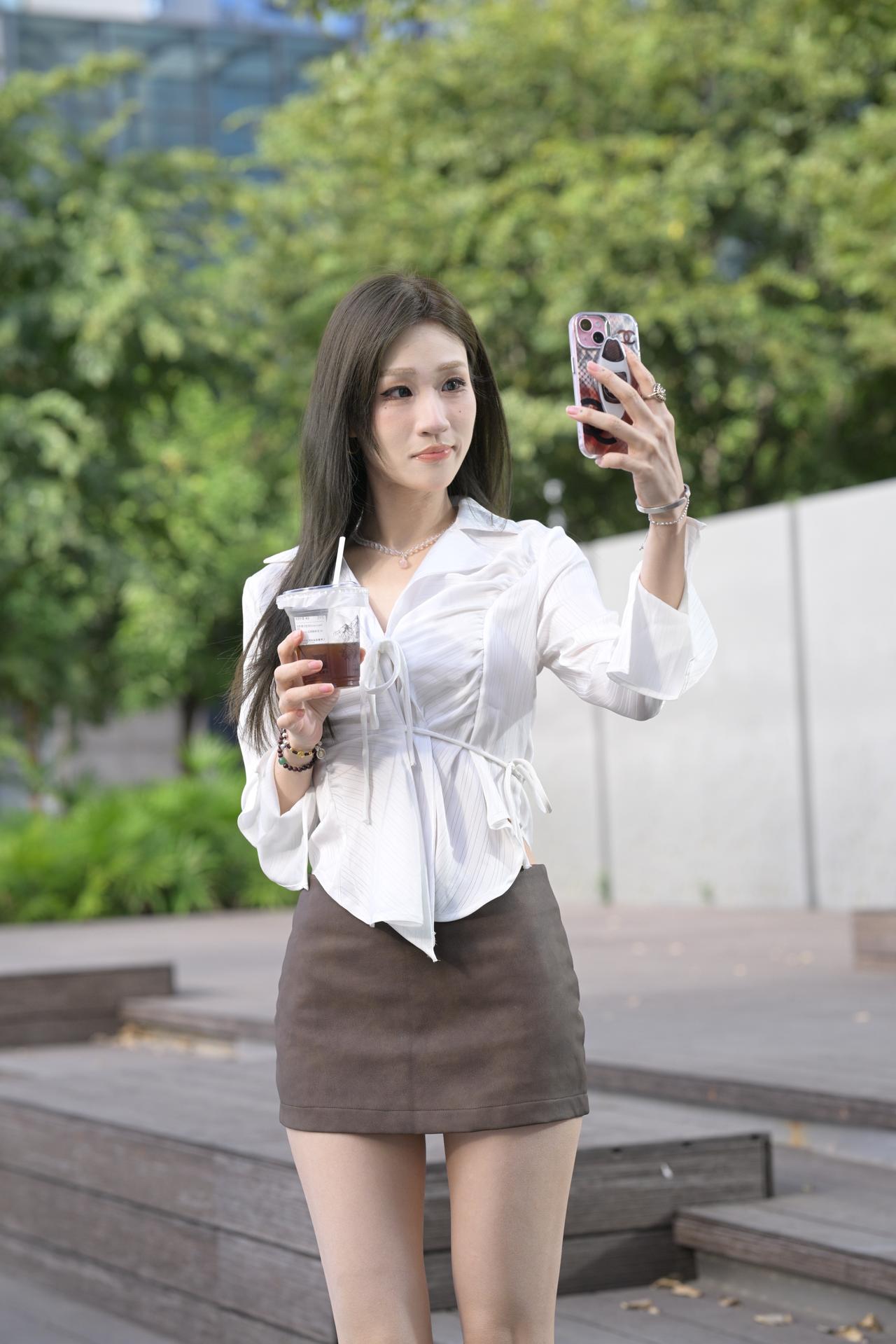 月亮与六便士 白色衬衫棕色包臀裙美腿高跟小姐姐,是不是有点太瘦呀-9500 无