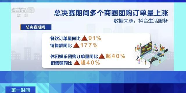 赛场周边商圈也借势推出众多“消费联动”活动,平台数据显示,总决赛期间国家体育场鸟巢周边的亚运村、国家体育馆、北苑等多个商圈团购订单量同比增长77%,团购销售额同比增长114%。其中,餐饮订单量同比上涨91%,销售额同比增长177%;休闲娱乐团购订单量与销售额均同比增长超40%。