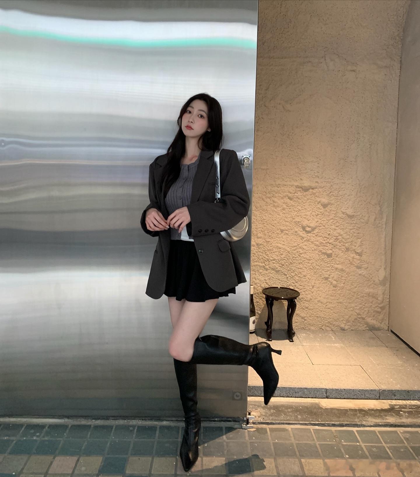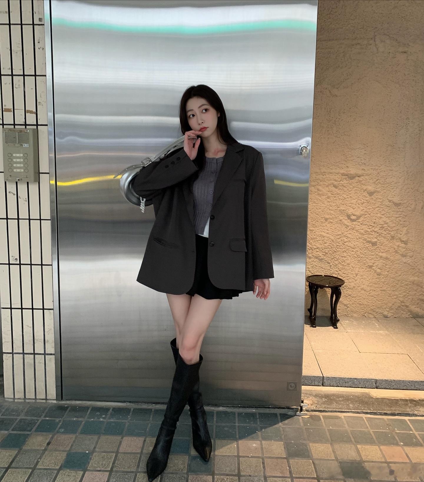 街头的职场穿搭模板!浅米色西装搭棕色西裤,配同色系高跟,简约干练又显气质,这样穿