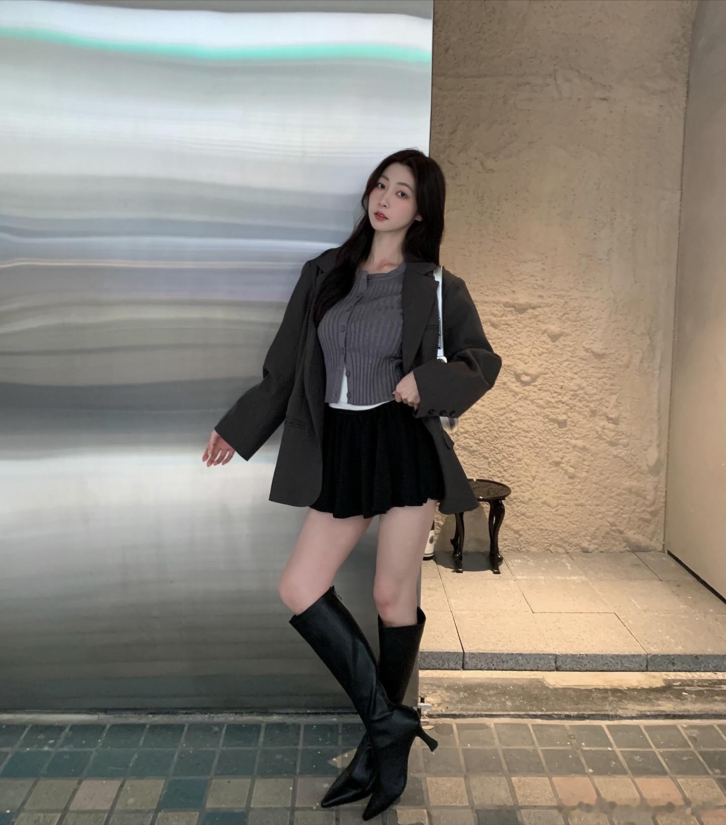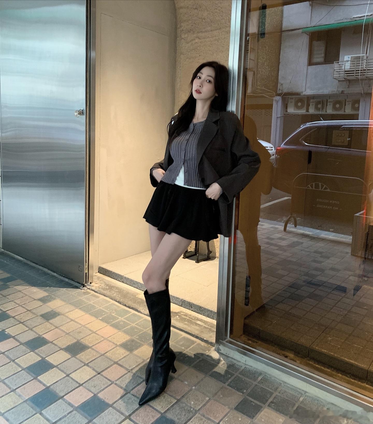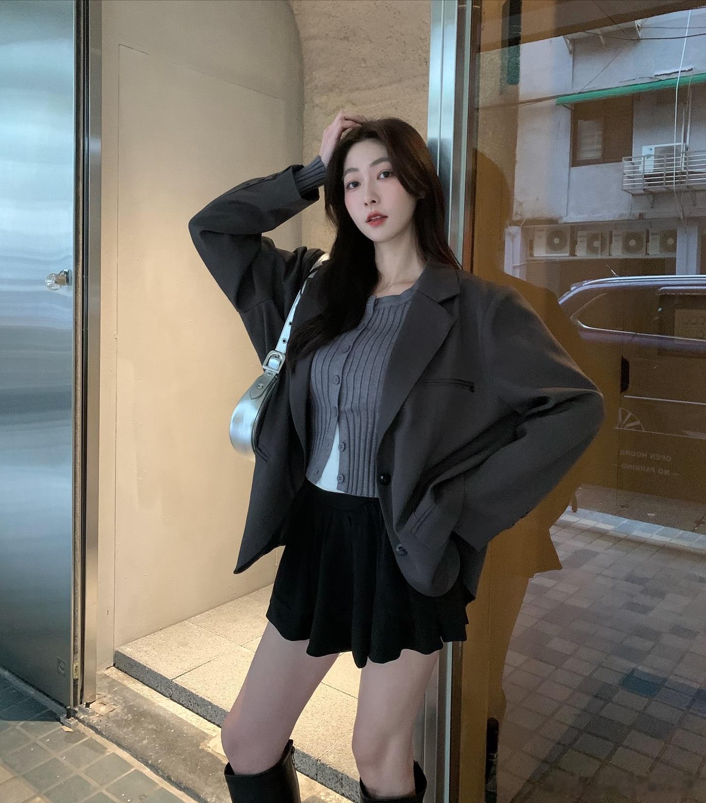 想要轻松随性的日常街头穿搭灵感?这就来分享。像藏青上衣配破洞阔腿裤,就是慵懒松