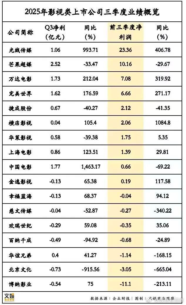 这进一步清晰勾勒出当前影视行业分化加剧的生存图景,也意味着,一张张接踵而至的Q3季度财报,不再只是上市影视公司们的“经营成绩单”,更是影视行业在内容迭代、模式创新、竞争加剧等多重变量下的“压力测试答卷”,藏着行业应对变局的生存之道和生长之法。