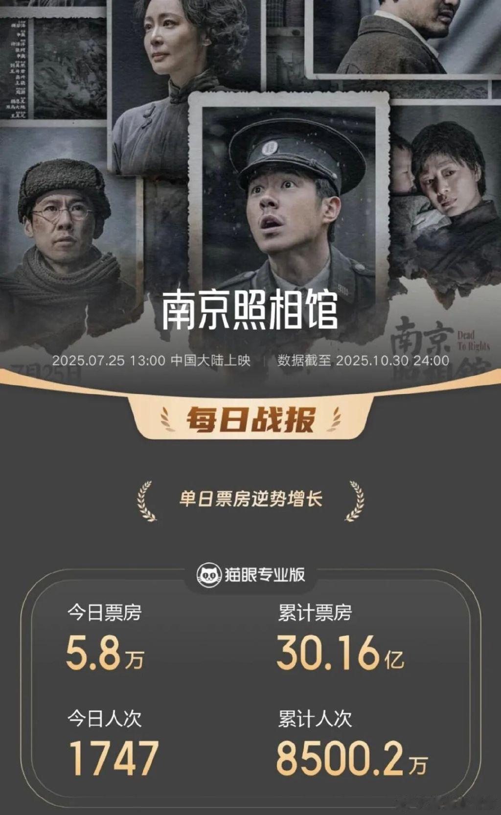 万达电影在财报中透露,今年第三季度,全国电影票房同比增长17.2%达127.2亿元(含服务费),观影人次同比增长29.8%达3.4亿,这其中公司投资出品《南京照相馆》《长安的荔枝》《聊斋:兰若寺》《有朵云像你》等电影贡献不小,《南京照相馆》更以30.16亿元拿下了暑期档票房冠军。