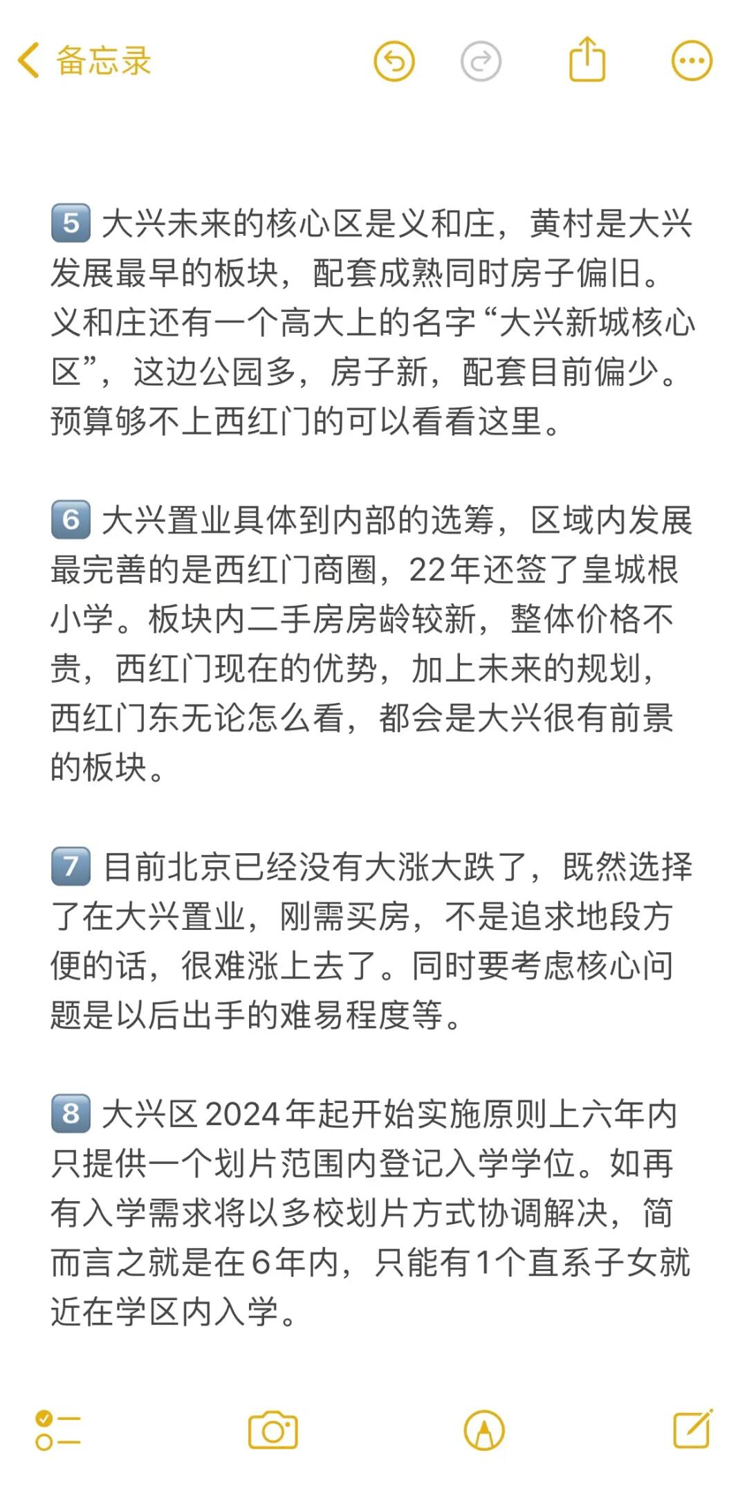 6️⃣ 大兴置业具体到内部的选筹,区域内发展最完善的是西红门商圈,22年还签了皇城根小学。板块内二手房房龄较新,整体价格不贵,西红门现在的优势,加上未来的规划,西红门东无论怎么看,都会是大兴很有前景的板块。