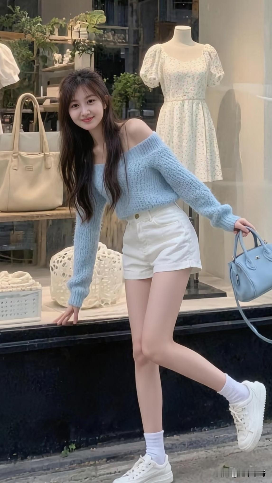 一个长发女孩穿着短裤在户外。微胖的女生怎么穿搭才可以遮肉超短裤女人