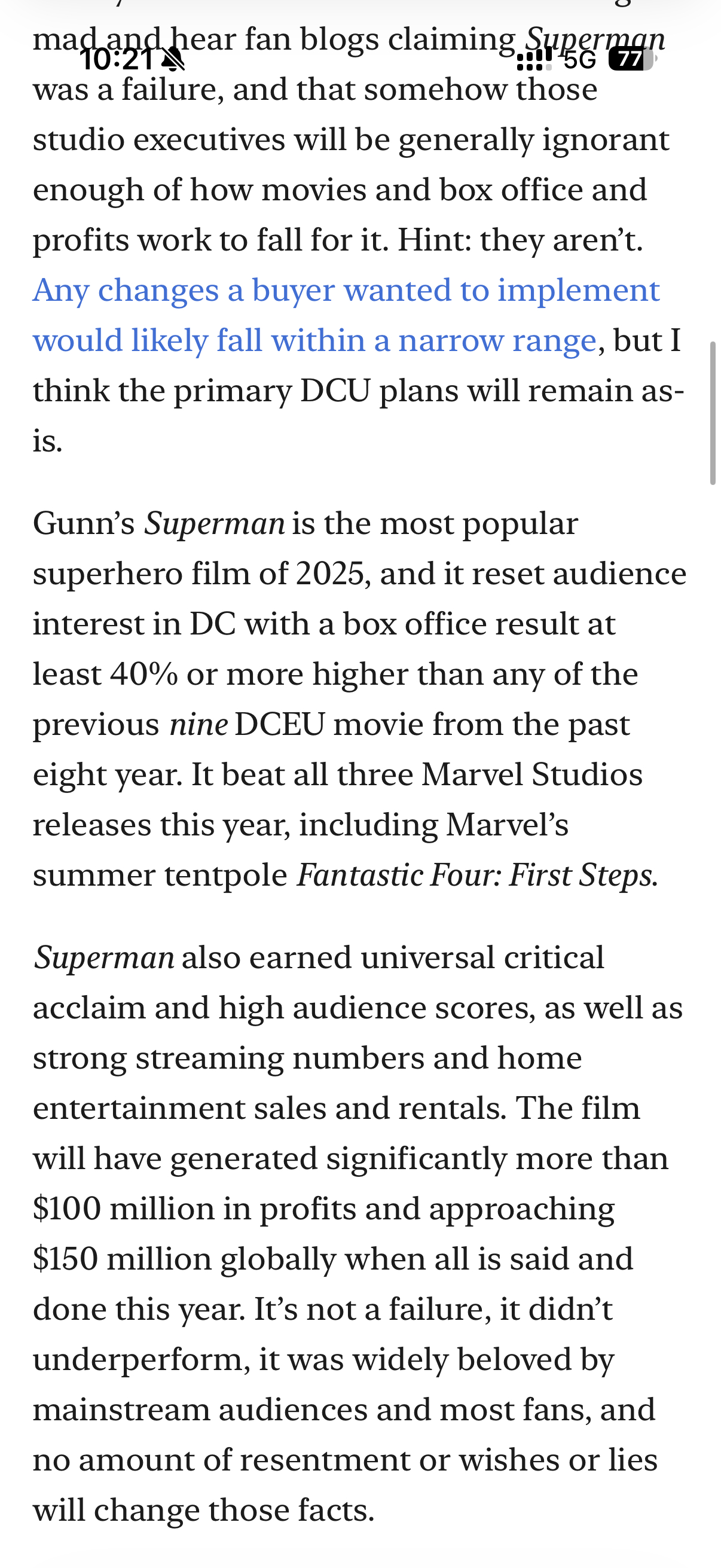 最新报道:《电影超人》已经产生了超过1亿美元的利润,全球利润约1.5亿美元,就净利润而言,它成为有史以来最成功的《超人》电影!