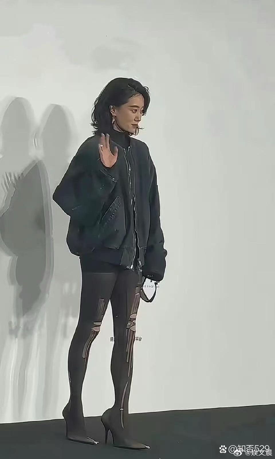 张小斐这双鞋子着实让人看不懂!难道是高跟鞋外面直接套了层黑丝?这穿搭脑洞也太大了