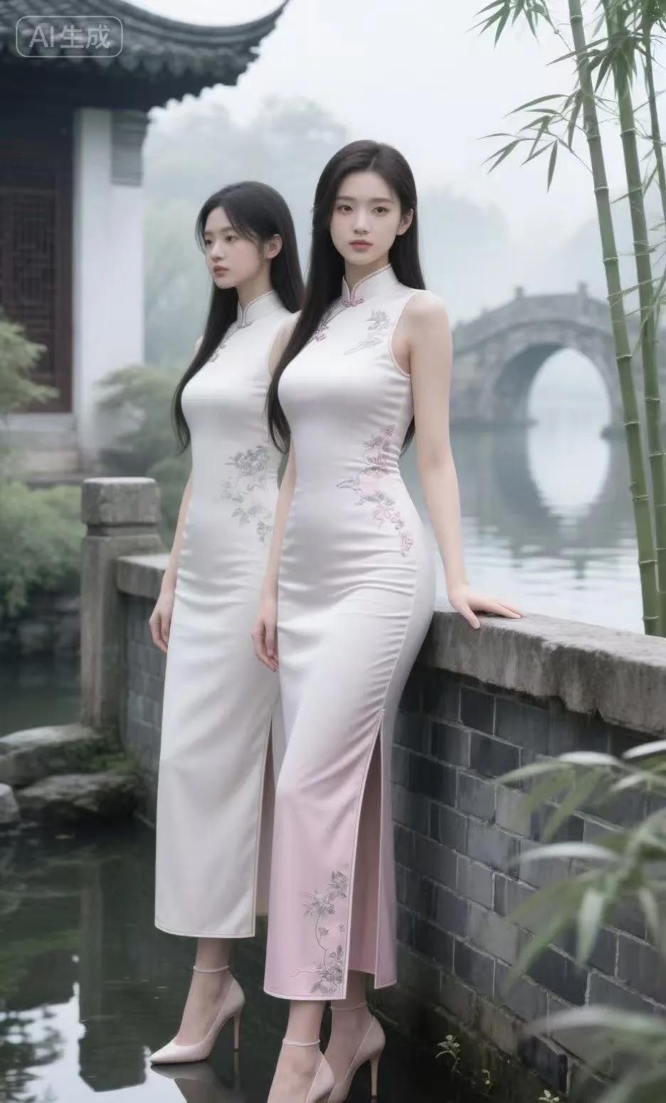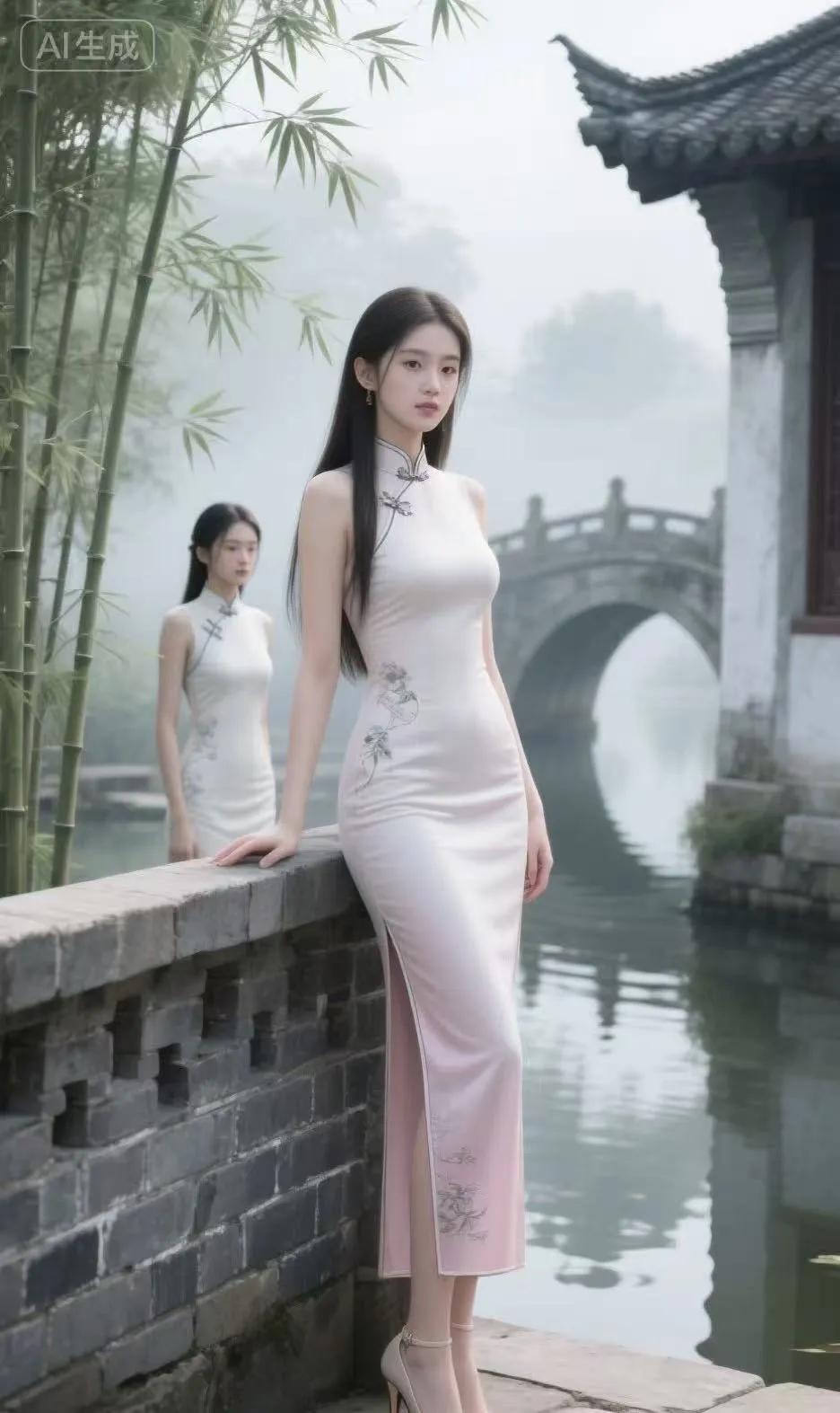 一袭链条吊带长裙,勾勒出优雅与性感的完美平衡。简约的黑白配色,在细腻的面料上交