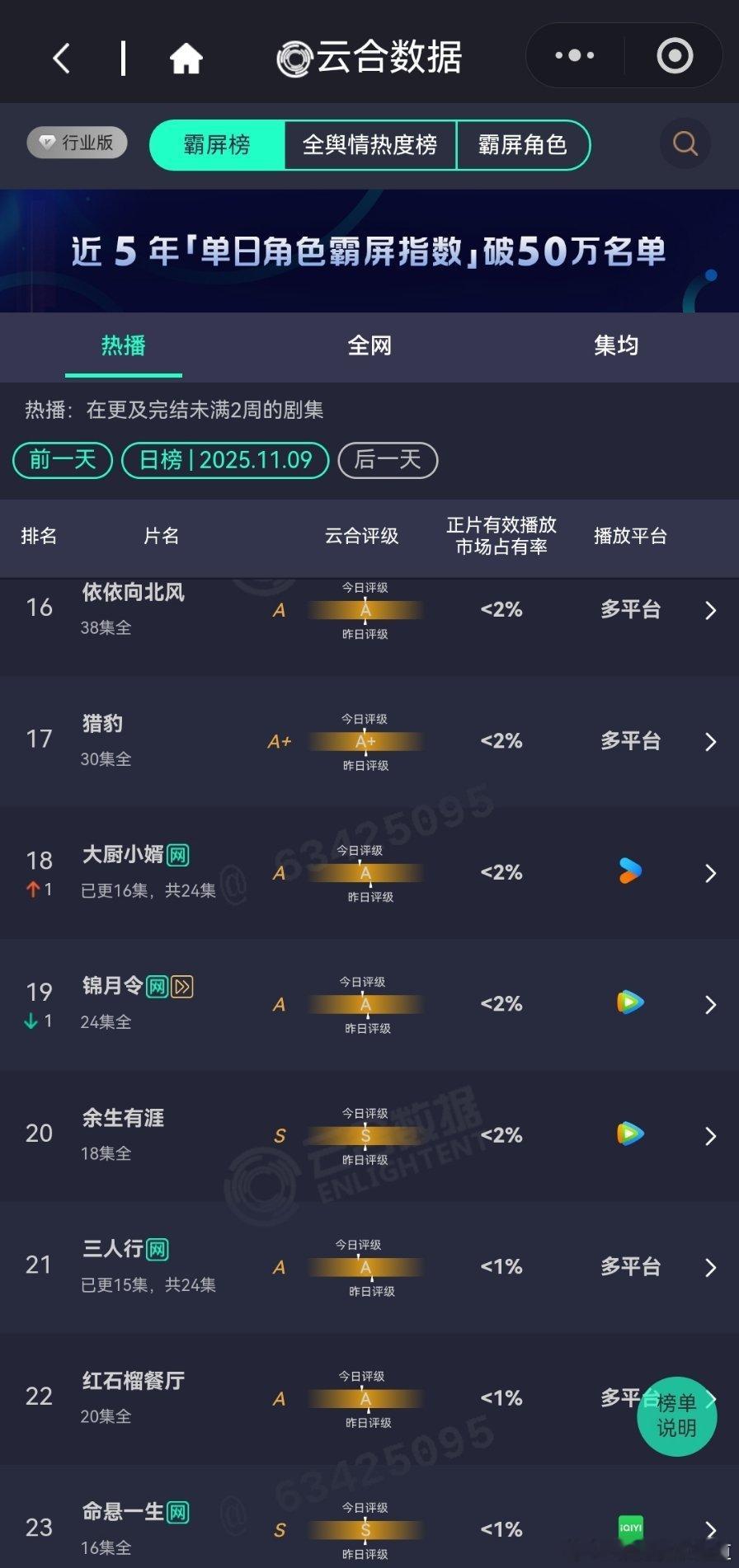 唐诡3云合翻倍失败,首日开播数据太高的弊端就在这里,翻倍很难,不过昨晚爱奇艺站内热度值已经接近破万了,这个占比说明爱奇艺站内热度值确实不如往年含播放量数据高了。