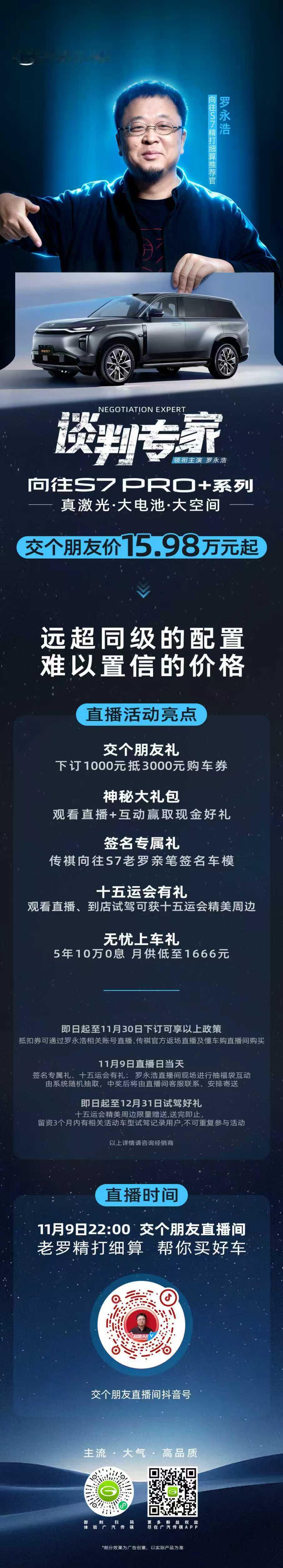 老罗居然担任了传祺向往S7精打细算推荐官,Pro+系列低至15.98万起,这会是双11最强单品吗?