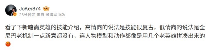 Joker谈新暗裔英雄:全老机制一点新意都没有 连模型都是拼凑来的