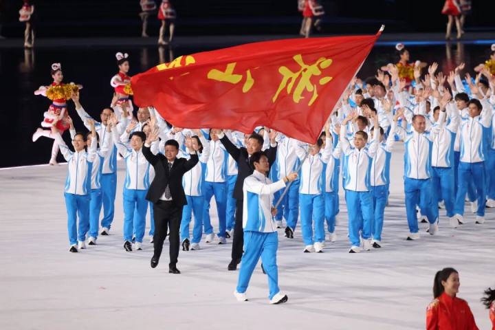全运会开幕式上,徐嘉余作为浙江代表团的旗手,扛着“浙江省”的大旗入场,他也是唯一一位游泳运动员旗手。