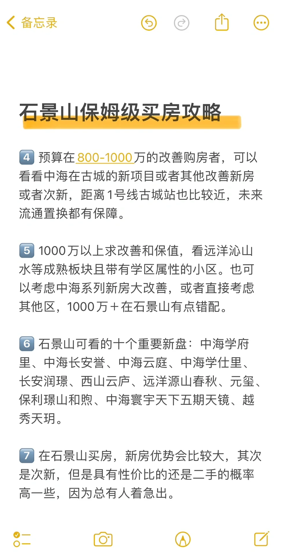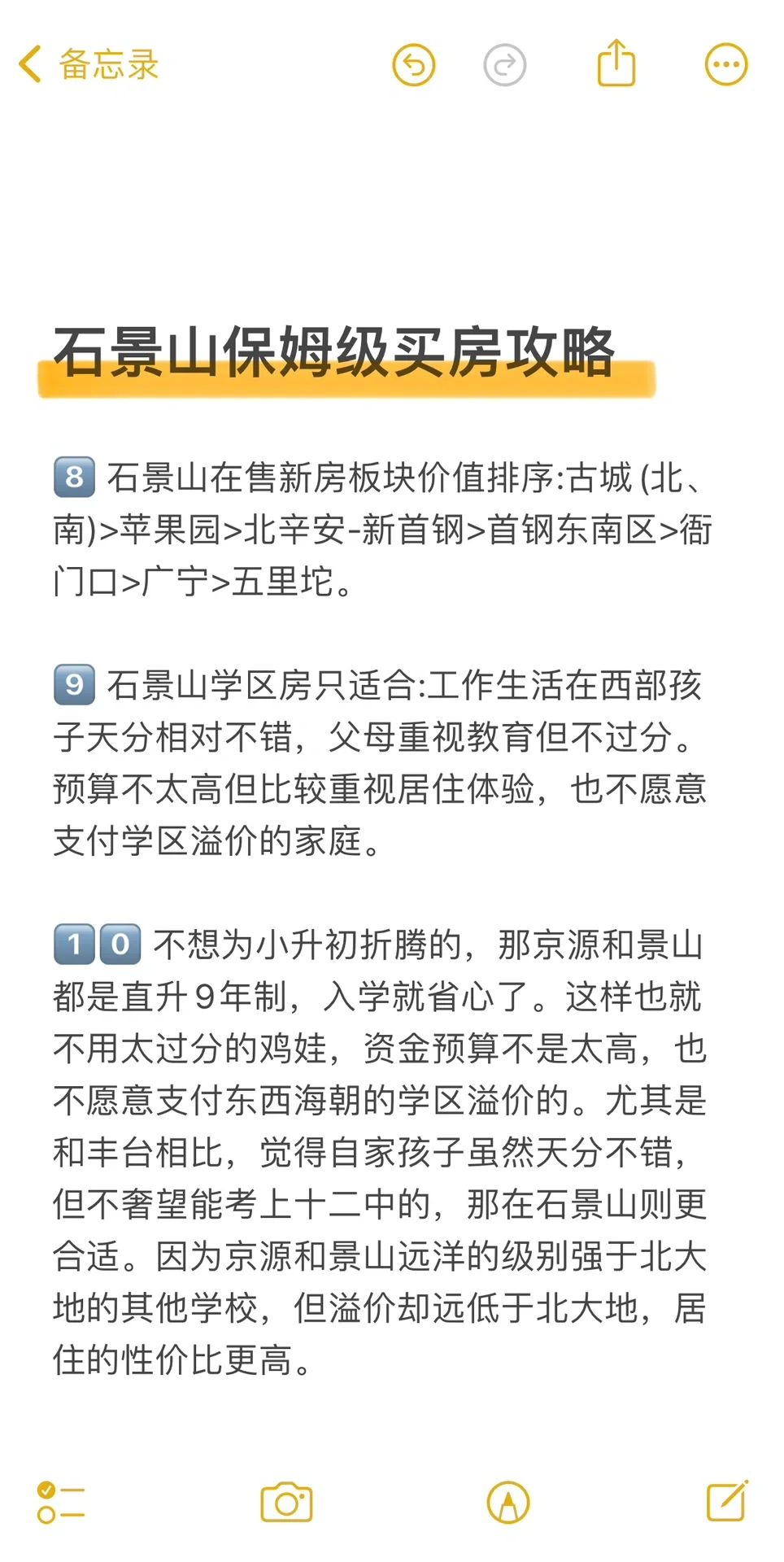 1️⃣ 根据现在大多石景山的房价可以看得出来,可提升的空间微乎其微。所以tz不建议看石景山,当然自住是可以的,毕竟环境优质。