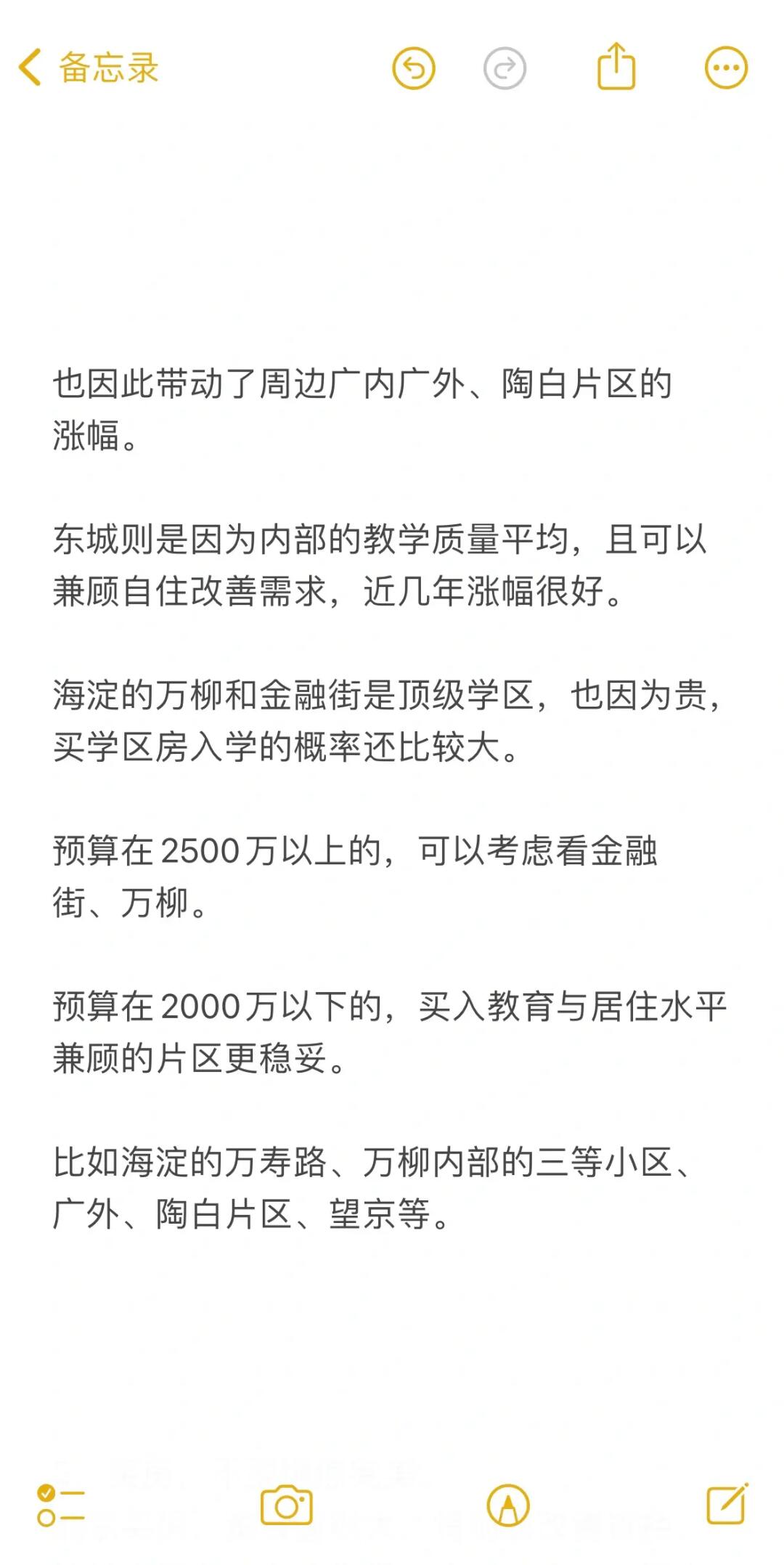 北京学区千千万,西城海淀各一半。但西城的德胜、月坛等核心学区由于前几年的731多校划片,2026年之前上学的家庭不建议购入。也因此带动了周边广内广外、陶白片区的涨幅。