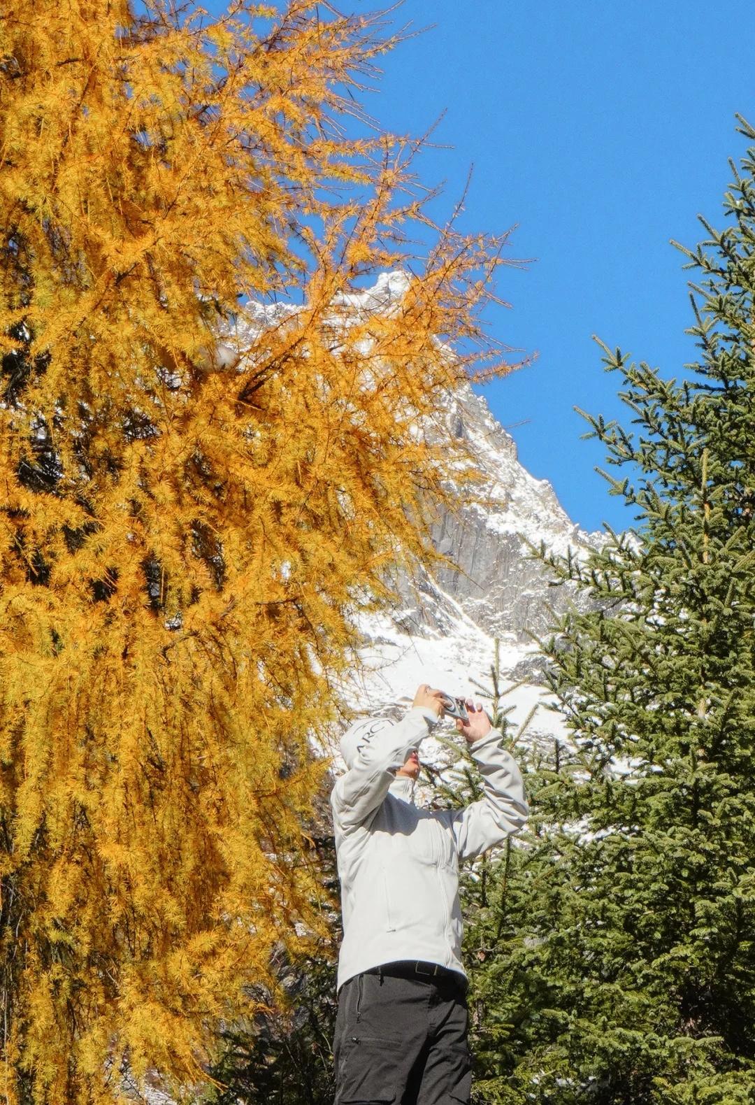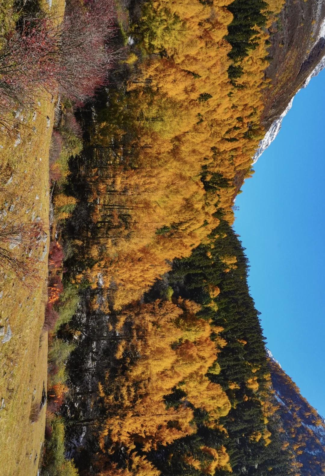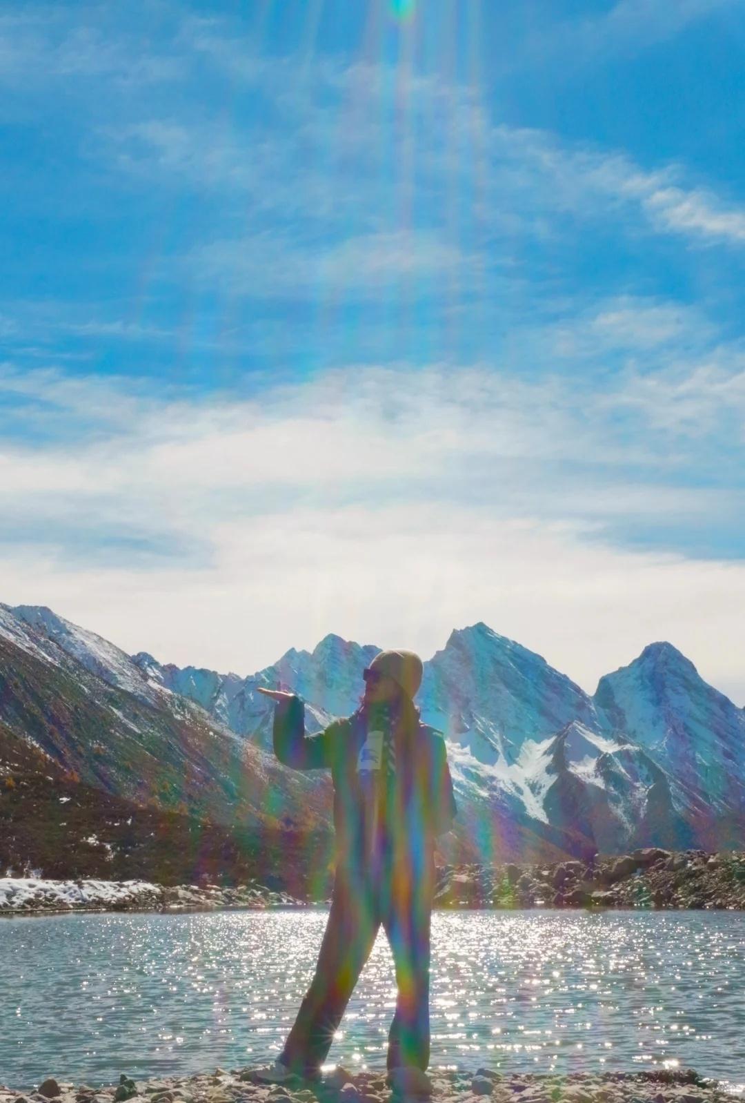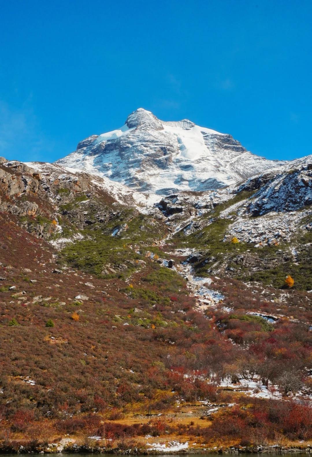川西的秋色,不虚此行 这次整个围绕四姑娘山展开的自驾之行(11.4-5)运气爆表,两日都是大晴天,还有幸目睹日月同辉,日照金山。而结斯沟的深入探索更是惊喜连连。 - day1:双桥沟(图2—5) 自驾翻越巴郎山下午到达双桥沟景区。 提前定好景区门票,刷身份证进入景区。三点停止检票,摆渡车五点半最后一班下山,想要玩的尽兴一点可以早一点到景区从上往下玩,遗憾的是漂流项目五点停止,我们没有赶上。 - day2:理小路 ICE AXE COFFEE—结斯沟—大二普—回家(图1,图8-14结斯沟,图15-18大二普) 一早出发在ICE AXE喝了咖啡就沿理小路段出发去小众秘境结斯沟探索。 导航至“向花村一组”,车开至平坦好路的尽头,驾驶轿车或者公路胎suv的车主建议下车坐村民的中转车上山,山里大多是有炮弹坑的碎石路,还会经过一个小水坑,错车麻烦,爆胎风险较大。我们四个人坐中转车花费300元,这简直是川西自己的迪士尼项目,一路抖出电音,抖落肾结石。司机人很热情,情绪价值给够。AT胎越野车可以直接开上去,中途遇到美景可以随时停车驻足或搭棚露营更自由惬意。(山里无信号,只有一条路上山) 行路至一半便看见了整个行程中最美的彩林,如烟花绽放般五彩斑斓,美的想流泪。行至山上停车的大平台便是车辆可达的终点,这里四面被雪山和冰川环绕,中间有一滩雪水消融形成的小湖泊,湖光山色交相辉映,静谧空灵。这与外界断联的三个小时,感官放大,美景尽收眼底,是我这周度过最美好的时光。 在赏过结斯沟的美景后,大二普对我来说就平平无奇,而且人很多,体验感没有那么好。 - 往理县方向回家的路上一路绕着雪山开,再一次幸运的看到日照金山,给这次的川西行画上完美的句号。 秋日散步美学 玩秋不如赏秋 秋天去看彩林 人间仙境 川西自驾 川西攻略 川西秋景 四姑娘山 四姑娘山双桥沟 秋日旅行 雪山上的秋景 彩林攻略 被秋天治愈的瞬间 川西拍照 一半仙境一半人间 每周一山 户外徒步 秋日川西 好像拍到了人生照片 旅游编辑部 秋日到站计划结斯沟 @摄影薯