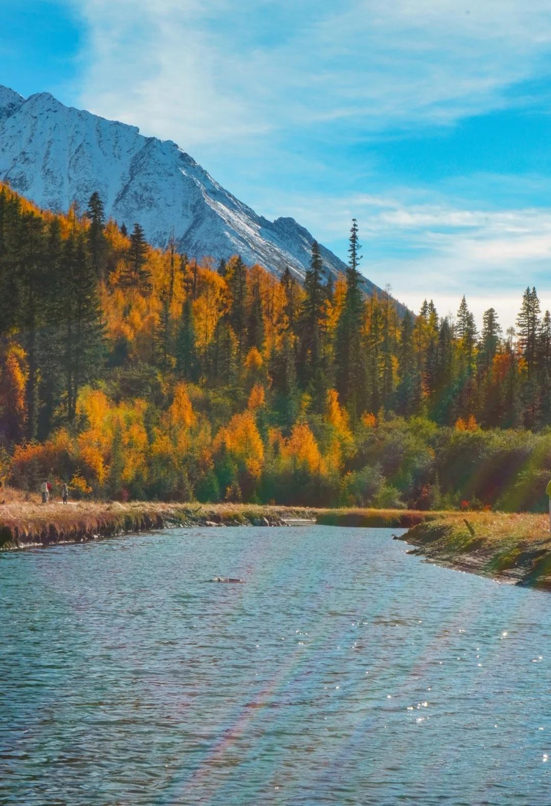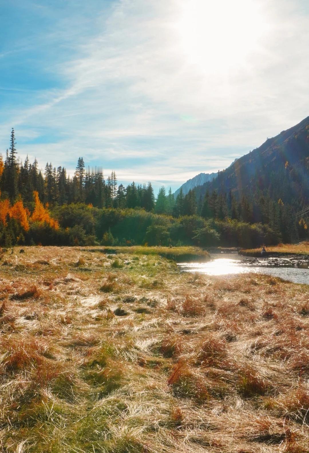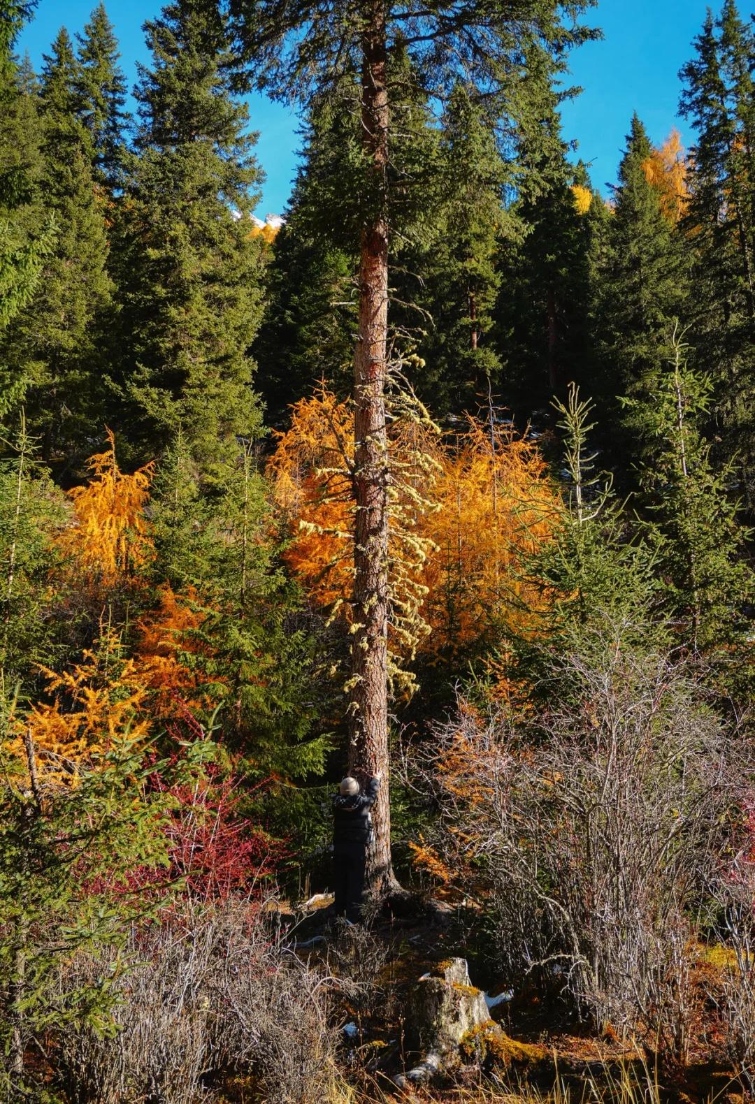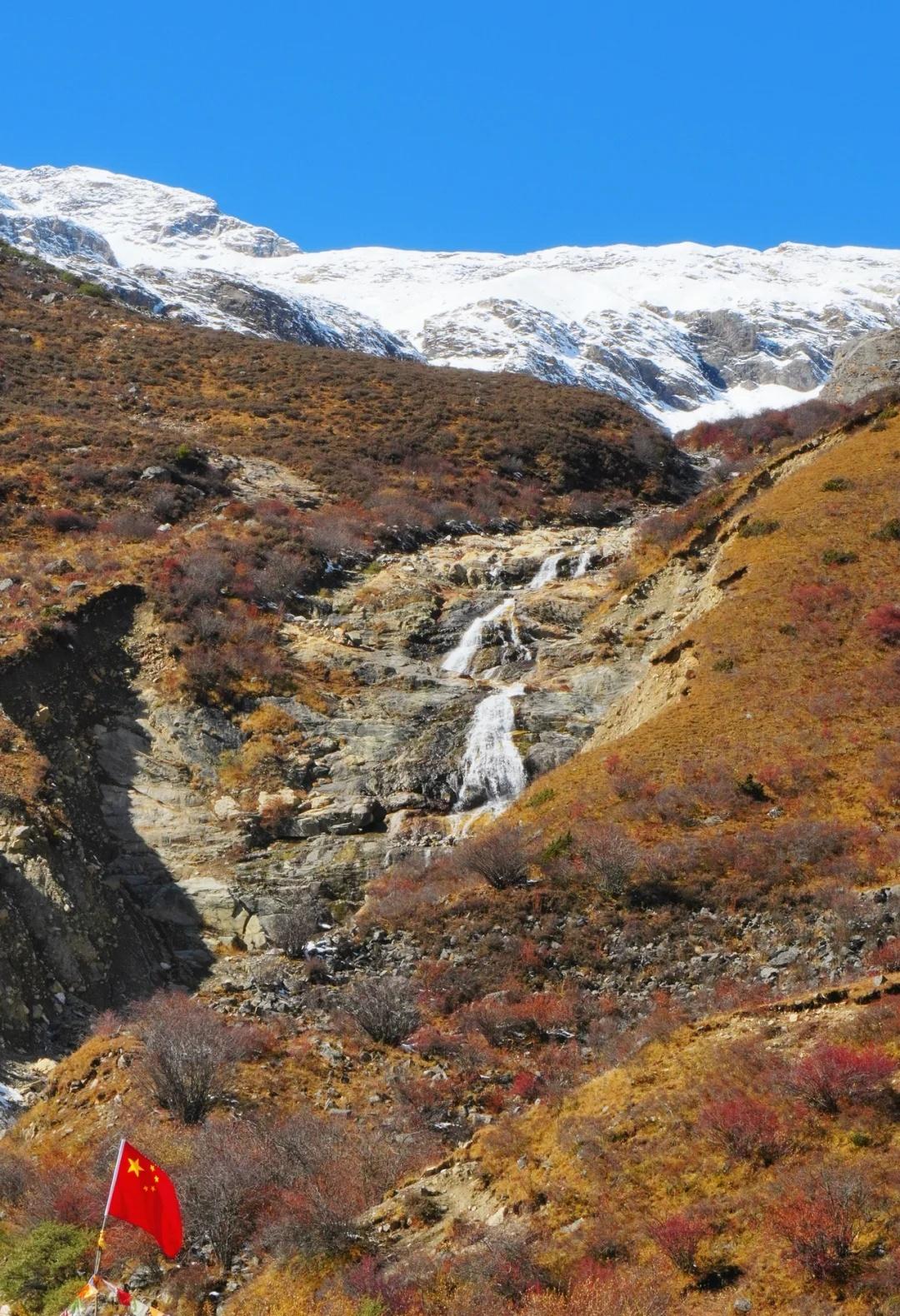 川西的秋色,不虚此行 这次整个围绕四姑娘山展开的自驾之行(11.4-5)运气爆表,两日都是大晴天,还有幸目睹日月同辉,日照金山。而结斯沟的深入探索更是惊喜连连。 - day1:双桥沟(图2—5) 自驾翻越巴郎山下午到达双桥沟景区。 提前定好景区门票,刷身份证进入景区。三点停止检票,摆渡车五点半最后一班下山,想要玩的尽兴一点可以早一点到景区从上往下玩,遗憾的是漂流项目五点停止,我们没有赶上。 - day2:理小路 ICE AXE COFFEE—结斯沟—大二普—回家(图1,图8-14结斯沟,图15-18大二普) 一早出发在ICE AXE喝了咖啡就沿理小路段出发去小众秘境结斯沟探索。 导航至“向花村一组”,车开至平坦好路的尽头,驾驶轿车或者公路胎suv的车主建议下车坐村民的中转车上山,山里大多是有炮弹坑的碎石路,还会经过一个小水坑,错车麻烦,爆胎风险较大。我们四个人坐中转车花费300元,这简直是川西自己的迪士尼项目,一路抖出电音,抖落肾结石。司机人很热情,情绪价值给够。AT胎越野车可以直接开上去,中途遇到美景可以随时停车驻足或搭棚露营更自由惬意。(山里无信号,只有一条路上山) 行路至一半便看见了整个行程中最美的彩林,如烟花绽放般五彩斑斓,美的想流泪。行至山上停车的大平台便是车辆可达的终点,这里四面被雪山和冰川环绕,中间有一滩雪水消融形成的小湖泊,湖光山色交相辉映,静谧空灵。这与外界断联的三个小时,感官放大,美景尽收眼底,是我这周度过最美好的时光。 在赏过结斯沟的美景后,大二普对我来说就平平无奇,而且人很多,体验感没有那么好。 - 往理县方向回家的路上一路绕着雪山开,再一次幸运的看到日照金山,给这次的川西行画上完美的句号。 秋日散步美学 玩秋不如赏秋 秋天去看彩林 人间仙境 川西自驾 川西攻略 川西秋景 四姑娘山 四姑娘山双桥沟 秋日旅行 雪山上的秋景 彩林攻略 被秋天治愈的瞬间 川西拍照 一半仙境一半人间 每周一山 户外徒步 秋日川西 好像拍到了人生照片 旅游编辑部 秋日到站计划结斯沟 @摄影薯