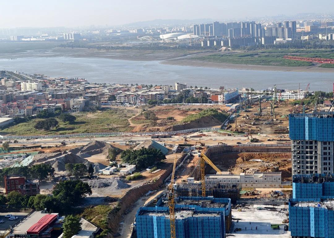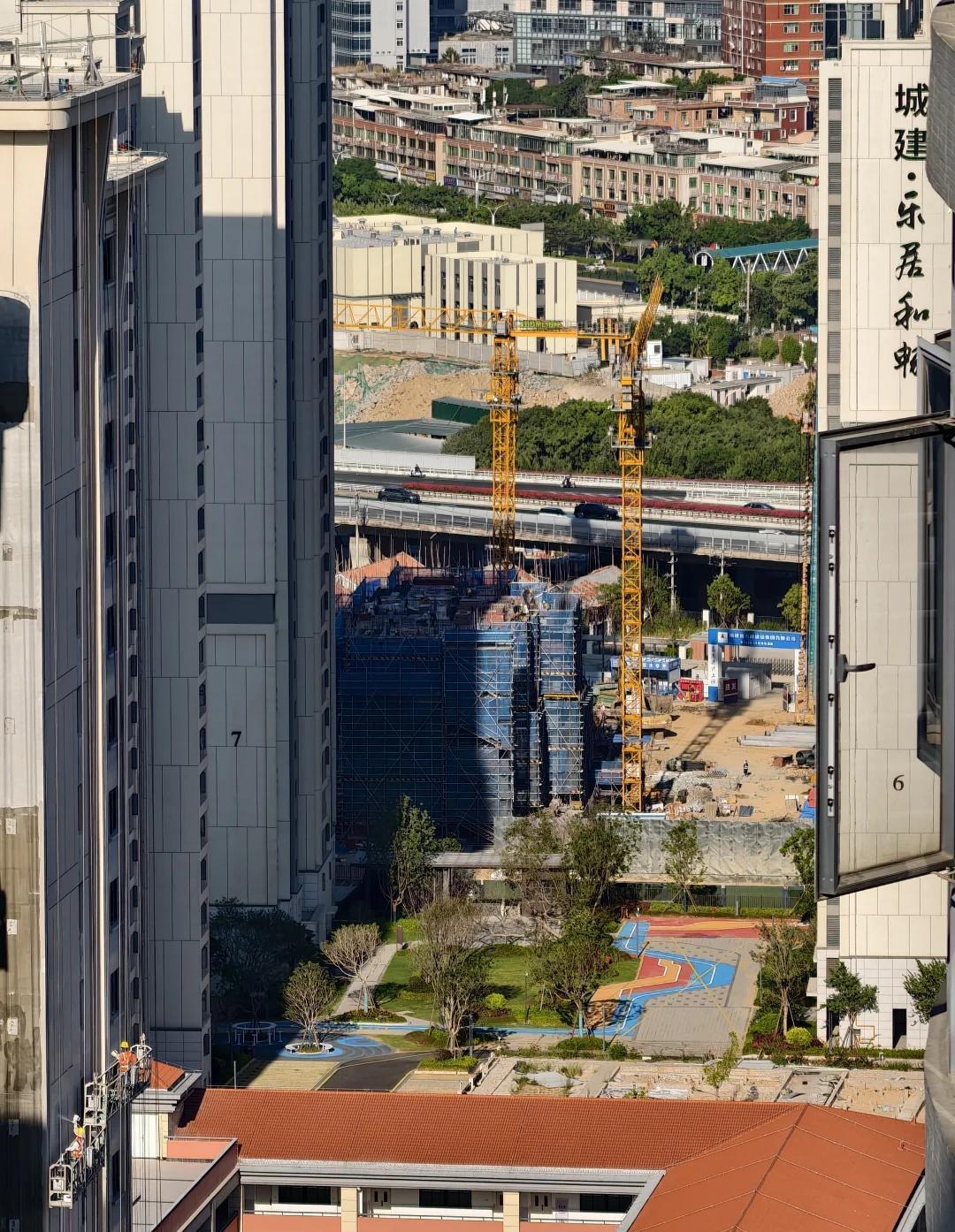 泉州东海中央活力区近况图11.7 保利天瓒都快完工了 有这么好的阳光反射 总体还是黑漆漆的 混在一大片毛坯房中倒是浑然一体 东海中央活力区 保利天瓒 水墨观海水墨观澜 晋悦瑞景湾 市井十洲城 实验小学东海校区 五中东海校区 城市更新改造 泉州