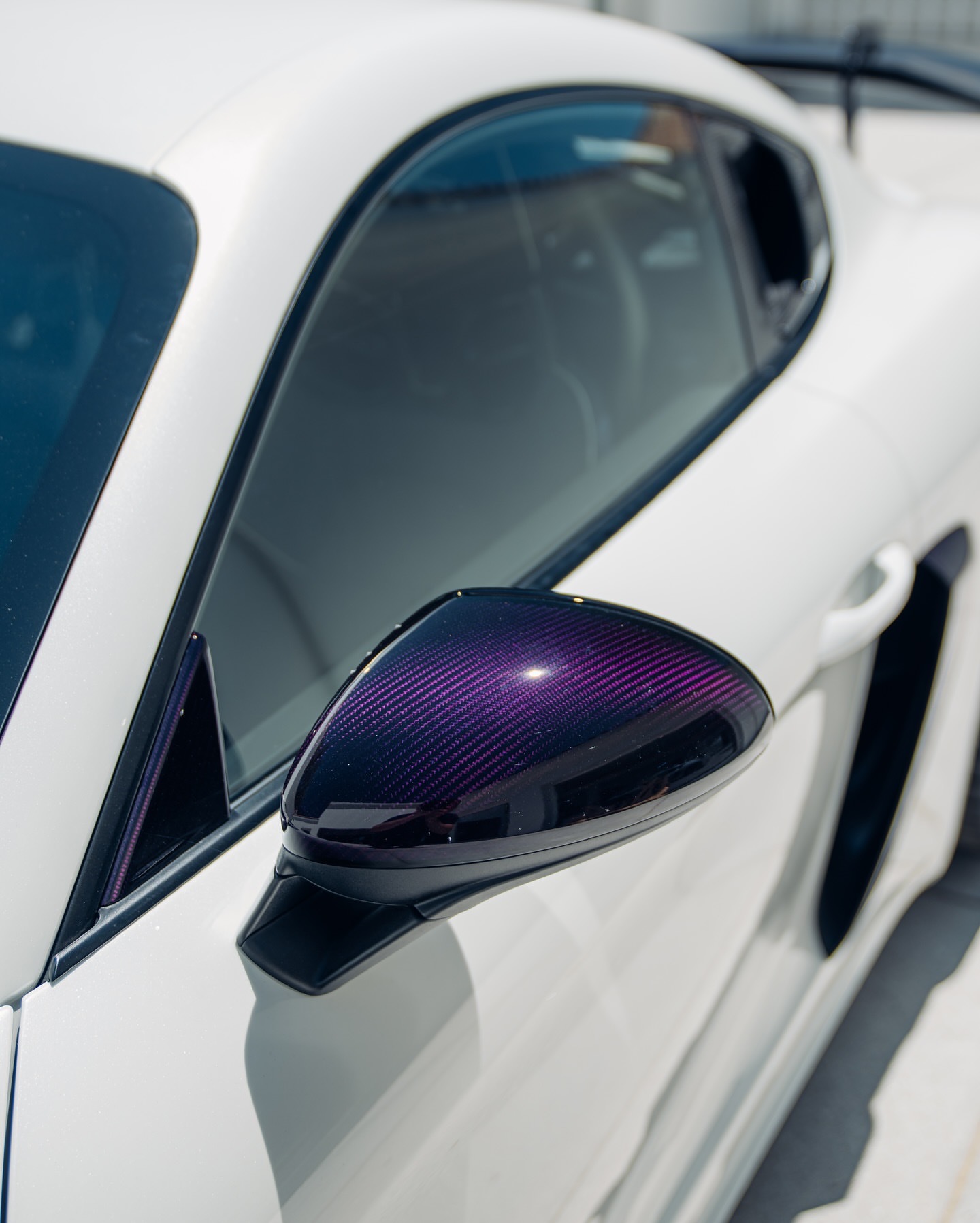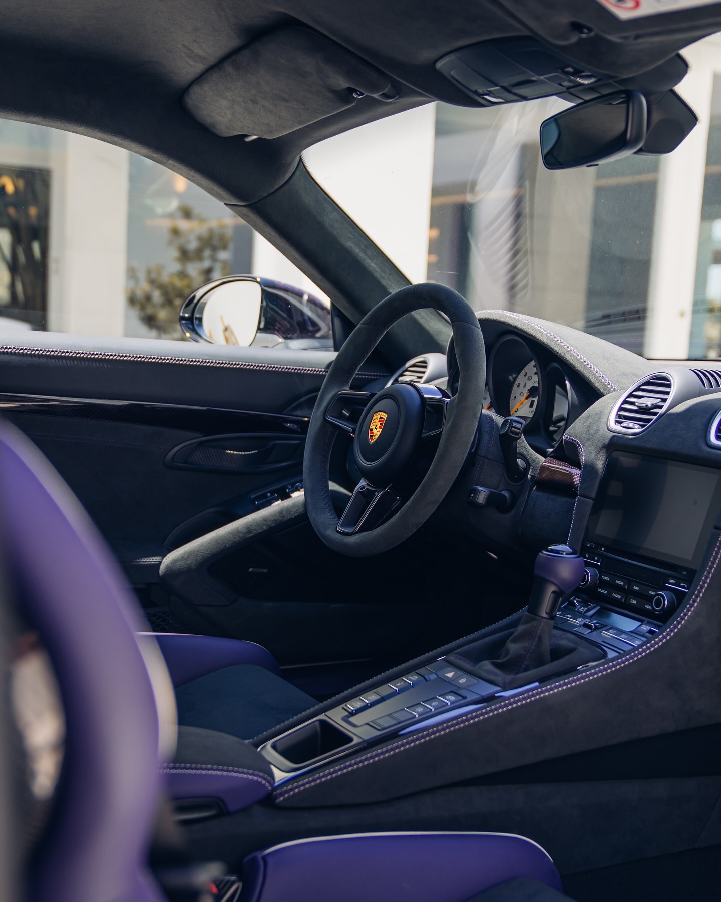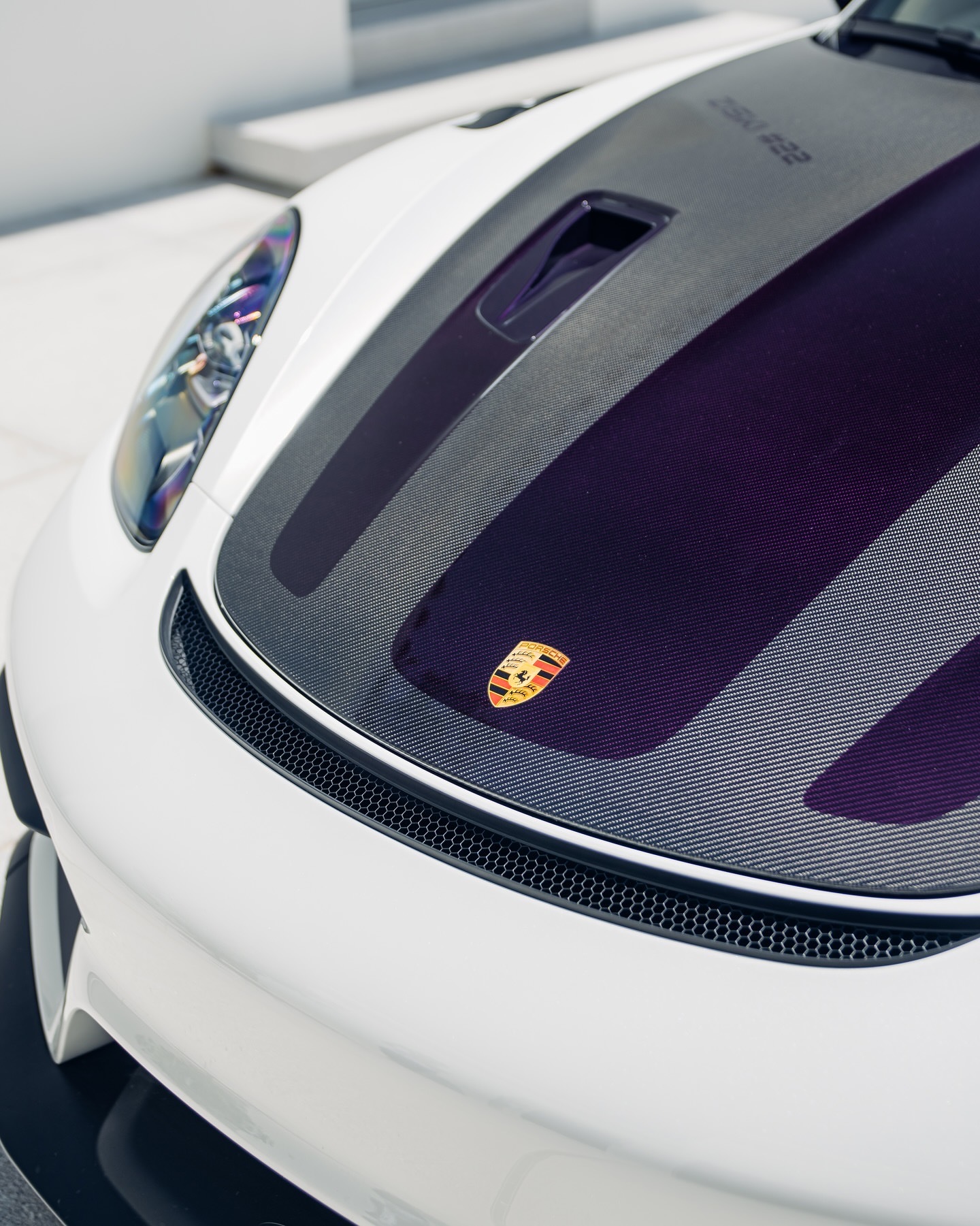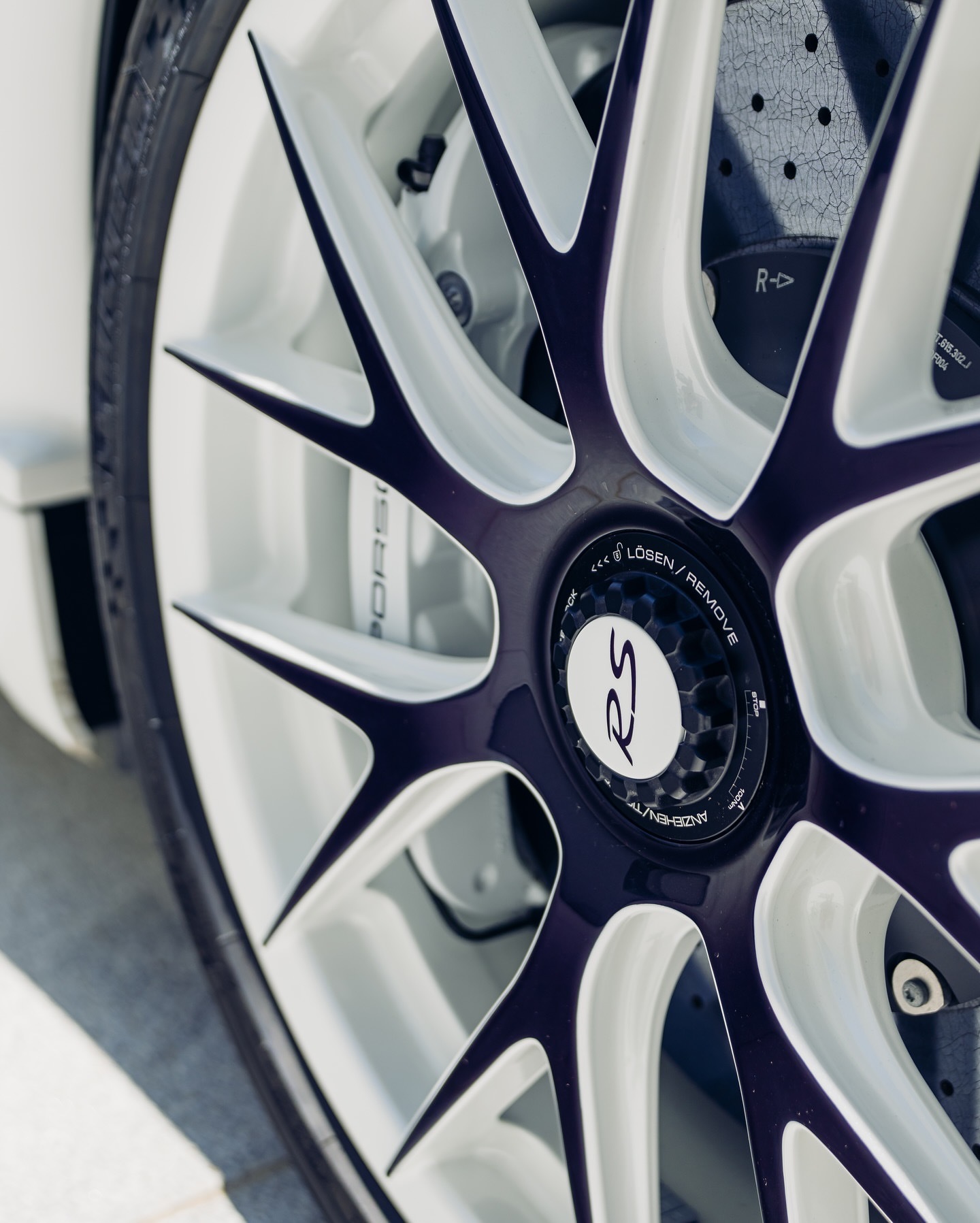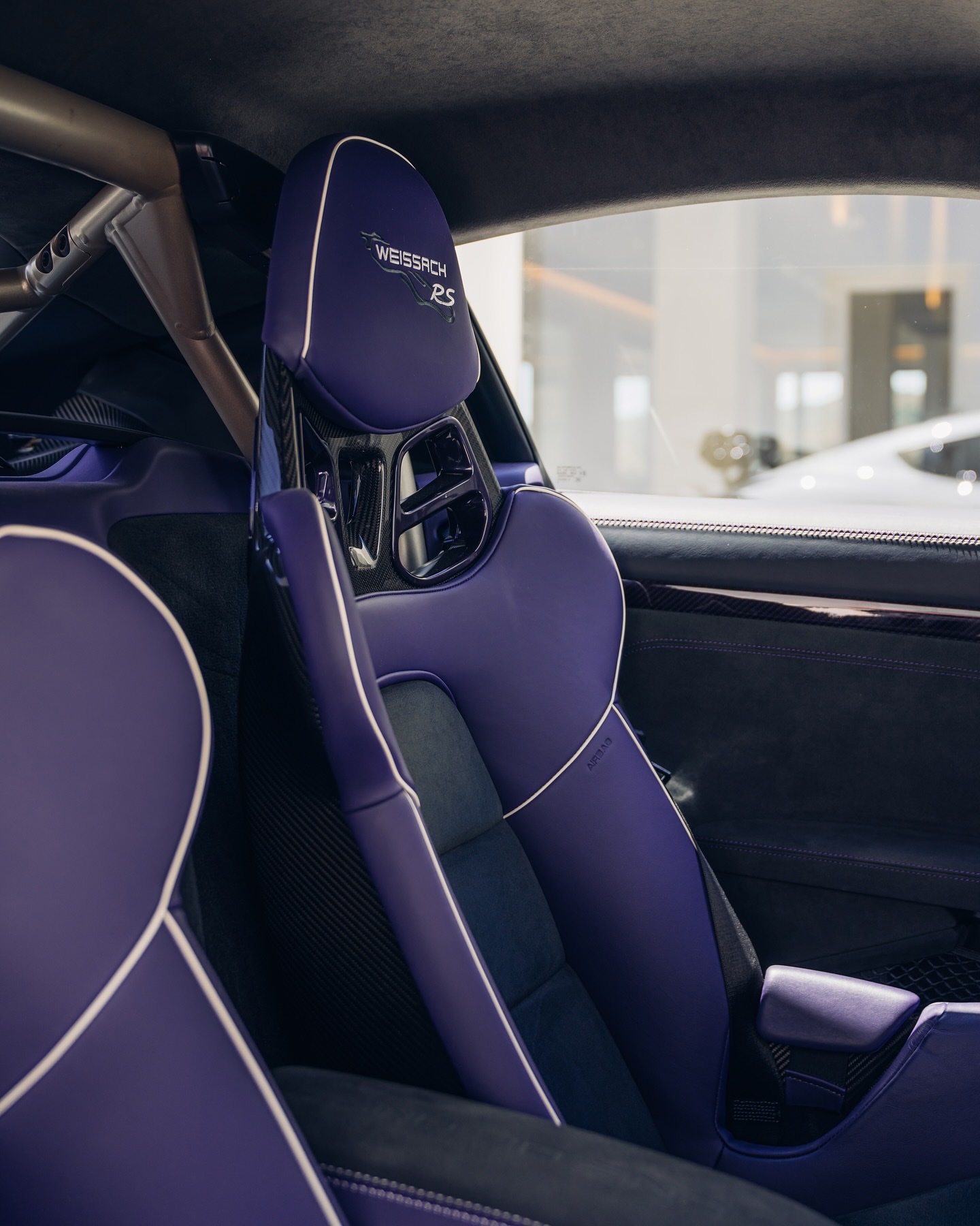 这台GT4RS配置得绝对顶级。白色外观搭配紫色配件,完美融入周围环境。 ..保