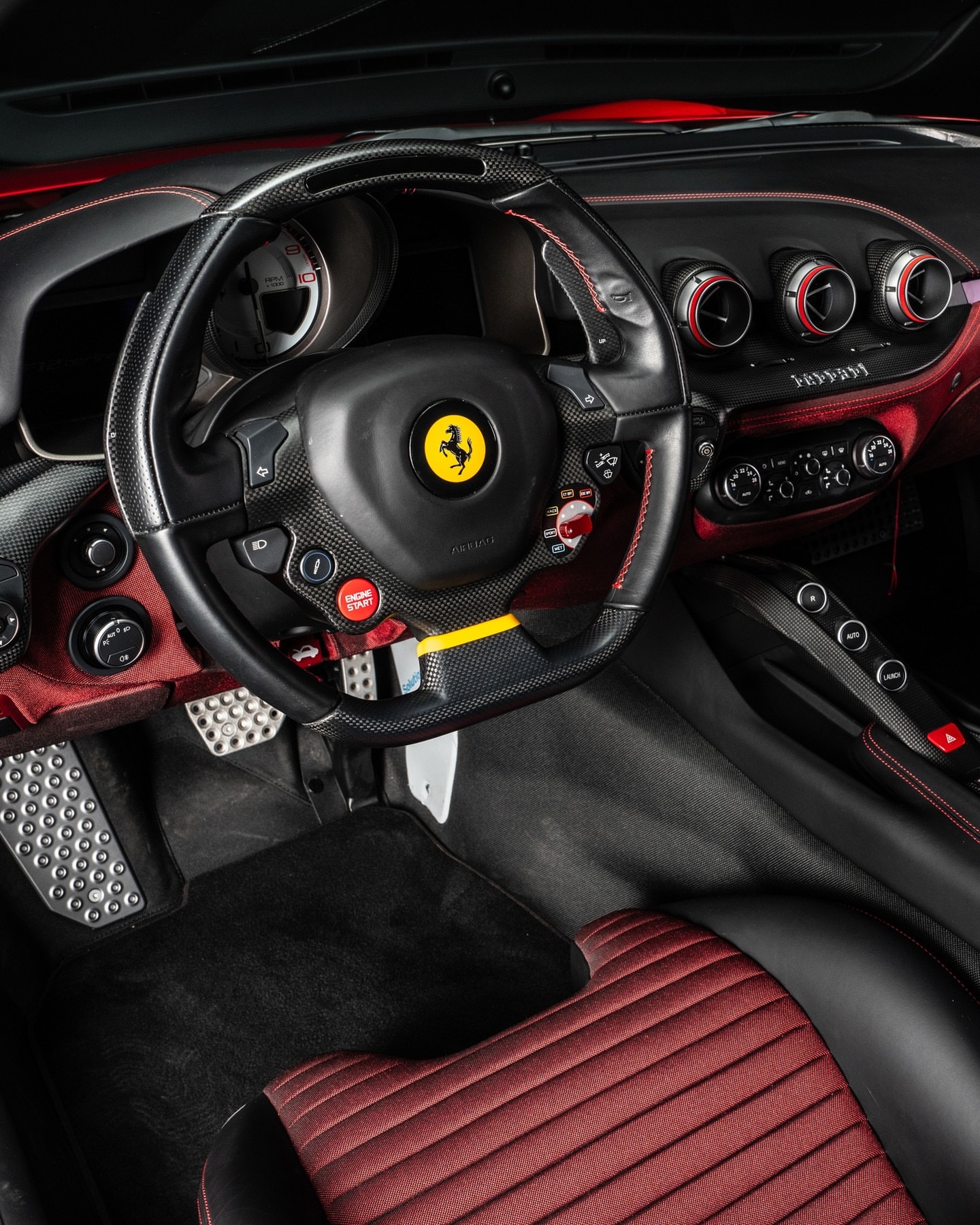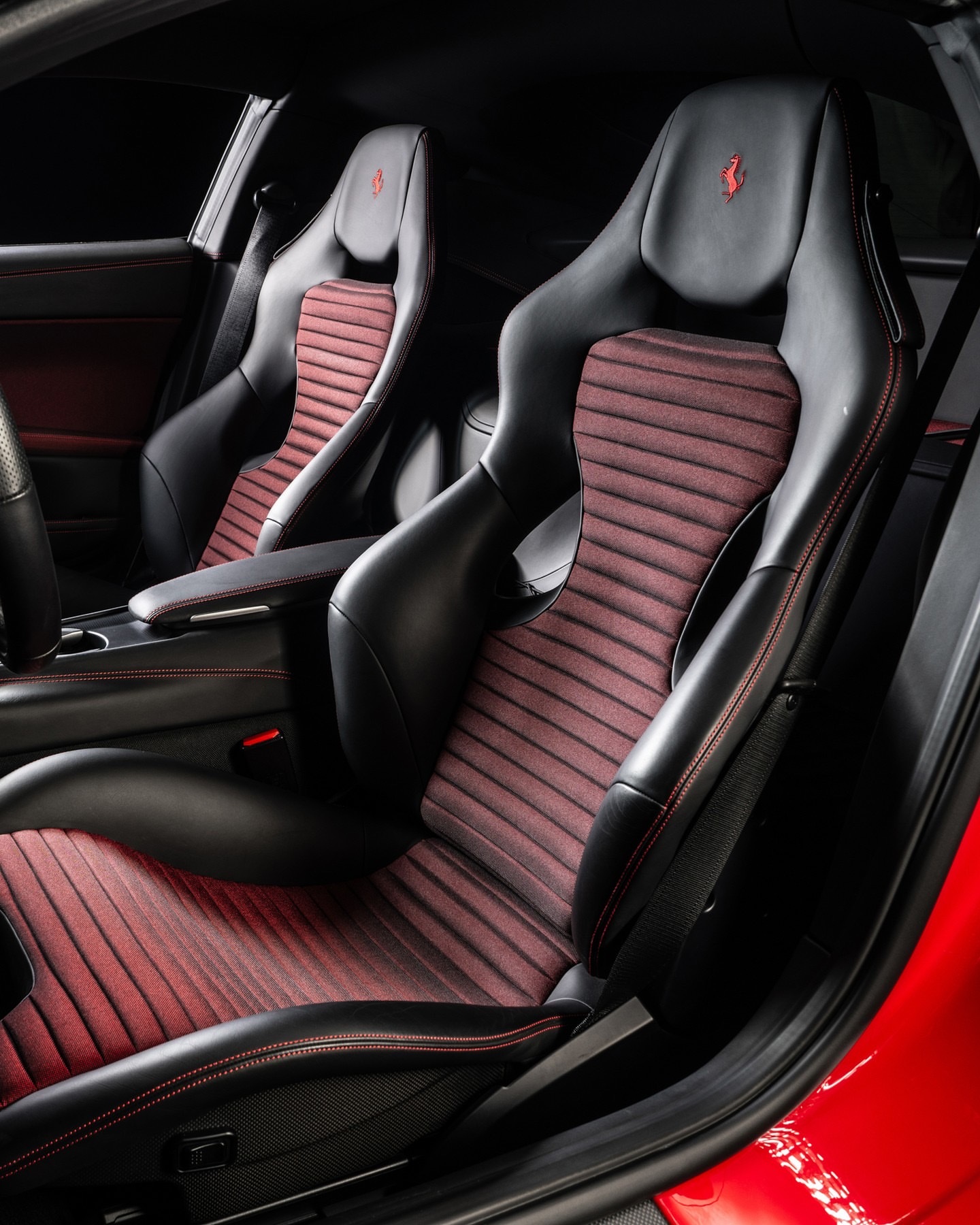以罗索·科尔斯红色为主色调,配以阿伏斯·布兰科条纹、反光镜盖和前翼子板,这辆车继承了法拉利最重要的大排量V12赛车设计之一的外观DNA。车内,定制规格继续以黑色皮革、Kvadrat光泽红色内饰、哑光碳纤维和独特的周年纪念细节贯穿始终。