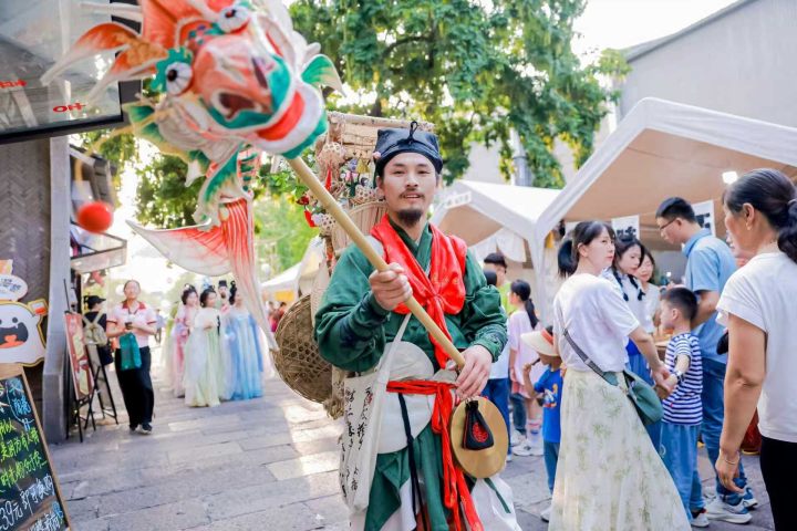 在大兜路历史文化街区,新晋IP“兜兜灶神”将首次福临市集,为市井增添几分烟火神仙气。这里完整保留了老杭州的禅意生活,香积寺的暮鼓晨钟与市井烟火相得益彰,在青石板路与白墙黛瓦间寻得一份闹中取静的生活智慧。与之相映生辉的,是由国家级表演团队带来的《市郎图》高跷巡游。此作品曾登央视、现乌镇,以其巍峨的高跷、华美的服饰,将《清明上河图》中贩夫走卒、引车卖浆的生动景象立于眼前,令人瞬间梦回千年前那个商品经济空前繁荣的宋朝。