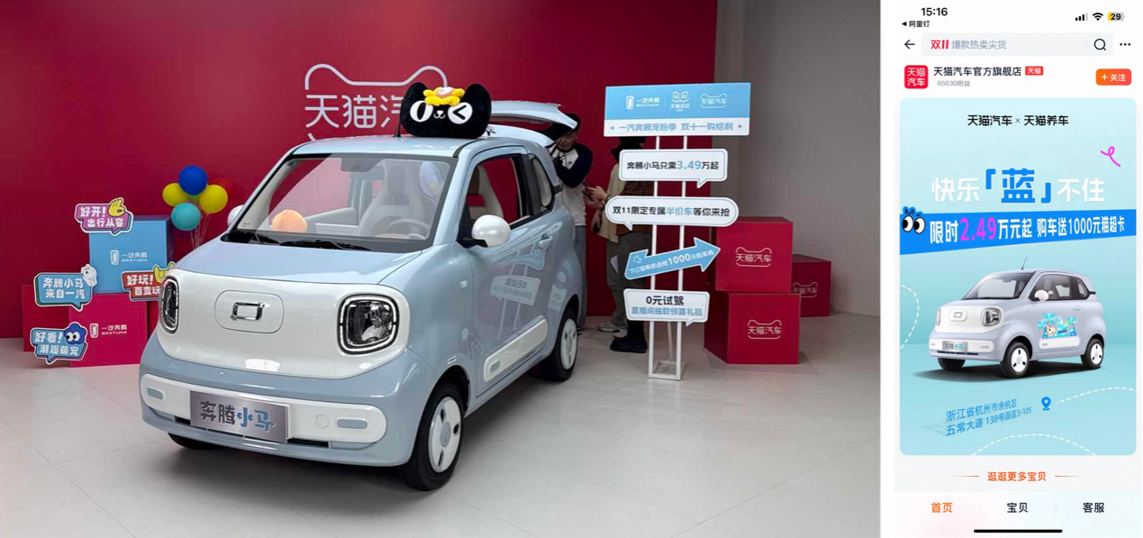 11月4日,通过「天猫汽车官方旗舰店」卖出首辆整车,并于11月8日完成该模式销售的首台车辆——奔腾小马的线下交付。此次交付不仅是天猫汽车整车销售业务体系的首次成功实践,更为后续规模化推进奠定了坚实基础。
