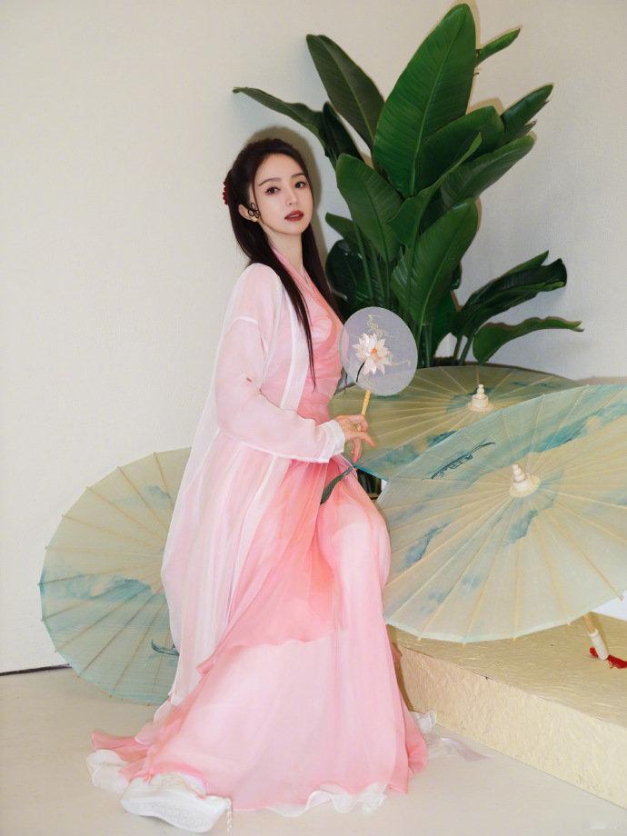 董璇cos白蛇 董璇的白蛇装扮好精致!头饰、服饰还有团扇,每一处细节都尽显白蛇的