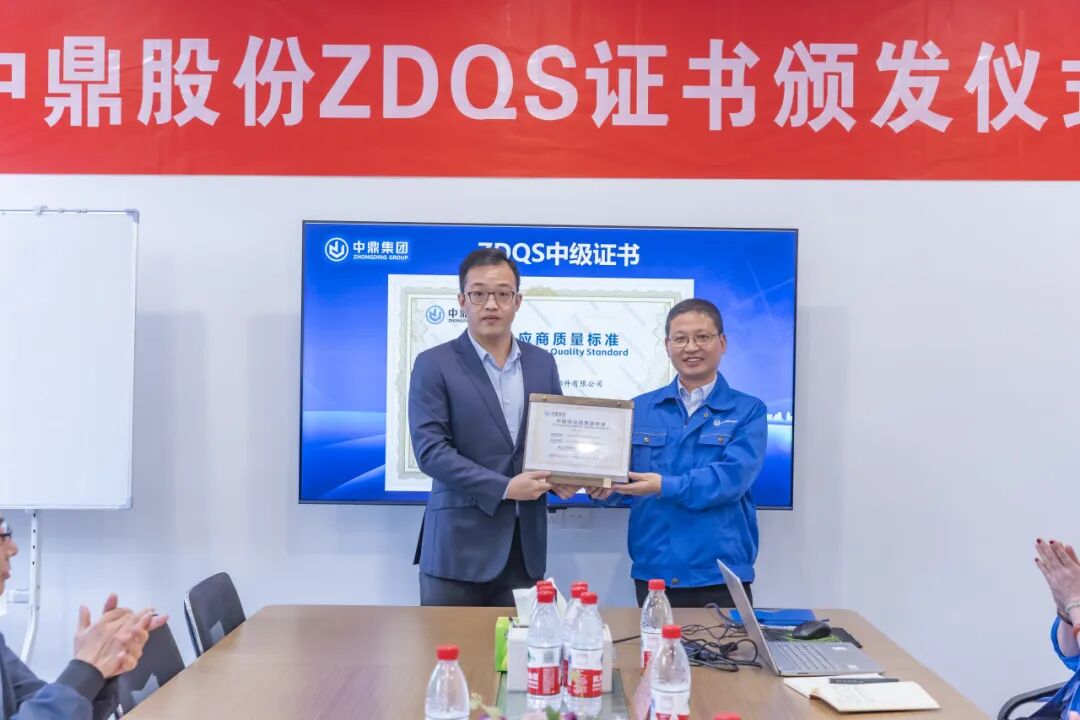 作为中鼎集团供应商管理的里程碑事件,现场正式签发了中鼎股份ZDQS认证第一张中级证书,中鼎战略合作伙伴——杭州宏骏汽车零部件有限公司成为第一个获得认证的企业。