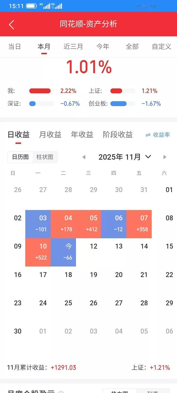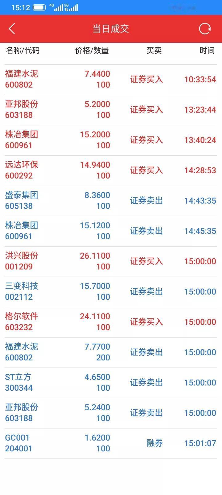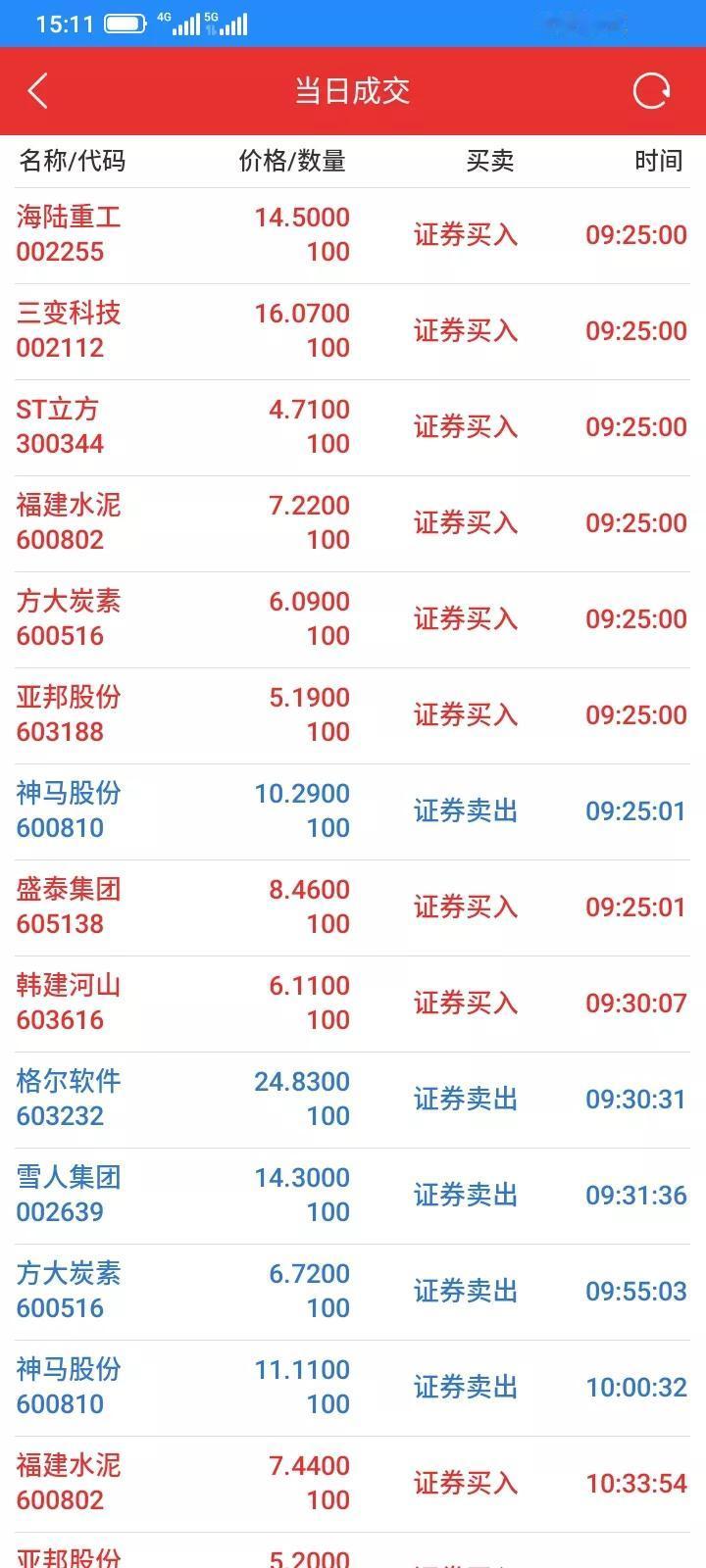 2025.11.11,今天上证指数小幅下跌,但是我持有的有几只股票大跌,又坐了过山车,今天达华早上快速涨停,舍不得卖,但是没有多久就破板了,一直在8个点左右徘徊,还幻想会回封涨停板,一直没有卖,谁知道收盘跌下来了,又是浮盈一次而已。 昨天就想卖掉100股神马,忘记了,没有卖,今天集合竞价就以10.29卖掉100股神马,谁知道卖在地板上,卖掉之后没过多久就涨停了,仓位太重了,以涨停价11.11再卖掉100股,先锁定部分利润,这只股票多次从赚钱到亏钱了,这次上涨逐步清仓了,保住一点利润。前天9.97还止损了100股,错过了。今天也少卖了80多块钱,可惜了。 集合竞价买入了不少,想做t,但是错了好几只,以14.50买入100股海陆,买在最高价,最低跌到13.40,差3分钱跌停了,计划跌停价13.37再补仓100股,差3分钱没有买到,收盘拉起来一些,当天亏了70块钱。 以16.07买入100股三变,买在最高价,低开低走,收盘以15.70卖掉100股,做t失败,亏了37块钱,成本更高了。 以4.71买入100股立方,也下跌,收盘以4.65卖掉100股,做t失败,亏了6块钱。成本更高了一点点。 以8.46买入100股盛泰,也买错了,低开低走,收盘前以8.36卖掉100股,做t失败亏了10块钱。 以6.11买入100股韩建,也买错了,低开低走,收盘前忘记卖掉了,做t失败,亏了7块钱 以7.22买入100股福建水泥,买入之后不断上涨,回落的时候以7.44又加仓100股,这只做对了,冲高回落,收盘以7.77卖掉200股,做t成功,赚到88块钱。 以5.19买入100股亚邦,后来回落又以6.20买入100股,收盘以6.24卖掉100股,做t成功,赚4块钱。 看到株冶触底反弹,又贪心了,以15.20买入100股株冶,但是成交之后就下跌了,一直再没有反弹上涨的迹象,下跌中以15.12卖掉100股,做t失败,亏了8块钱。 格尔早上触发了止损条件单,自动以24.83卖掉100股,卖掉之后之后反弹无力,继续下跌,下跌说明卖对了,就做个反t,收盘以24.11买回来100股,赚72块钱,降低一点成本,继续持有。 以6.09买入100股方大,早上很快涨停了,以涨停价6.72卖掉100股,做t成功,赚63块钱。 今天雪人下跌中触发了止损条件单,自动以14.30清仓卖掉了100股,持有了好几天,最终离场,赚一百多块钱。 收盘前以跌停价14.94新建仓买入100股远达,收盘打开了跌停板,暂时没有亏。 收盘以26.11新建仓买入100股洪兴,比跌停价高了一分钱。希望明天能够反弹上涨。 今天总体t了8只股票,t了900股,总体做t还是赚170块钱,降低了亏损。今天清仓一只股票,新建仓3只股票,都是大跌的,希望明天不要再下跌。今天总市值4.52万元,总资产5.53万元,从赚几百块钱到收盘倒亏了66元。也不多。收盘指数